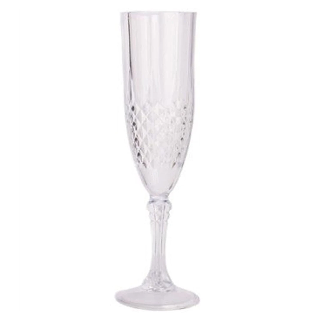 The Simcha 5 oz Elegant plastic champagne glasses looks amazingly like real crystal glass. They will astonish your guests when you serve with these amazing plastic glasses. Simcha collection Crystal like glasses is made of a shatterproof material and allows you to enjoy your wine and beverages without worry. These Plastic Wine glasses are made to travel and realistically sparkle when they catch light. They are recyclable, and reusable. Because the temperatures of dishwashers vary so we recommend hand washing only.