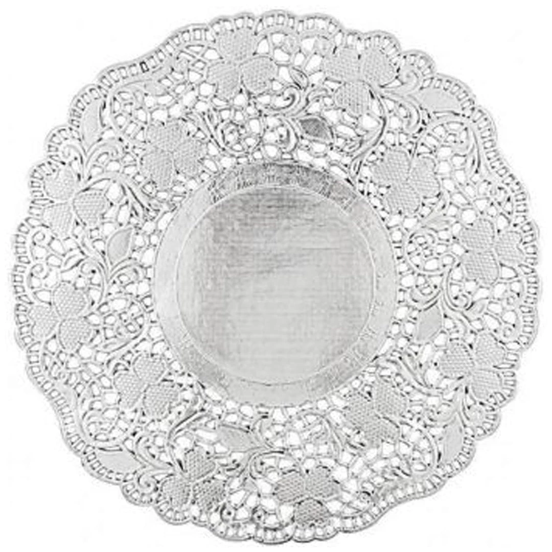 With the look of lace and the convenience of paper, our Silver Paper Round Doilies are as pretty as they are practical. These silver doilies feature a scalloped, die-cut floral border to create an elegant backdrop atop trays and platters for appetizers, desserts and more. When the party is over, simply toss or recycle.