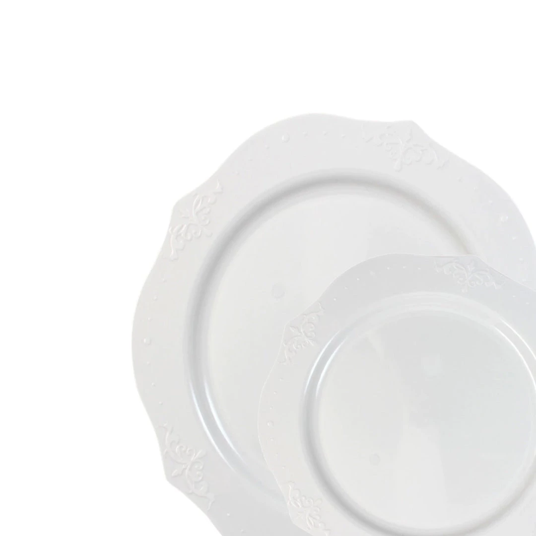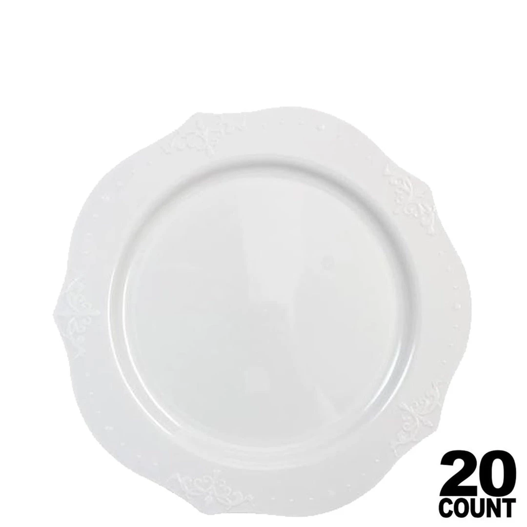 - Elegant White Plastic Salad Plate 7″, Pattern Edge