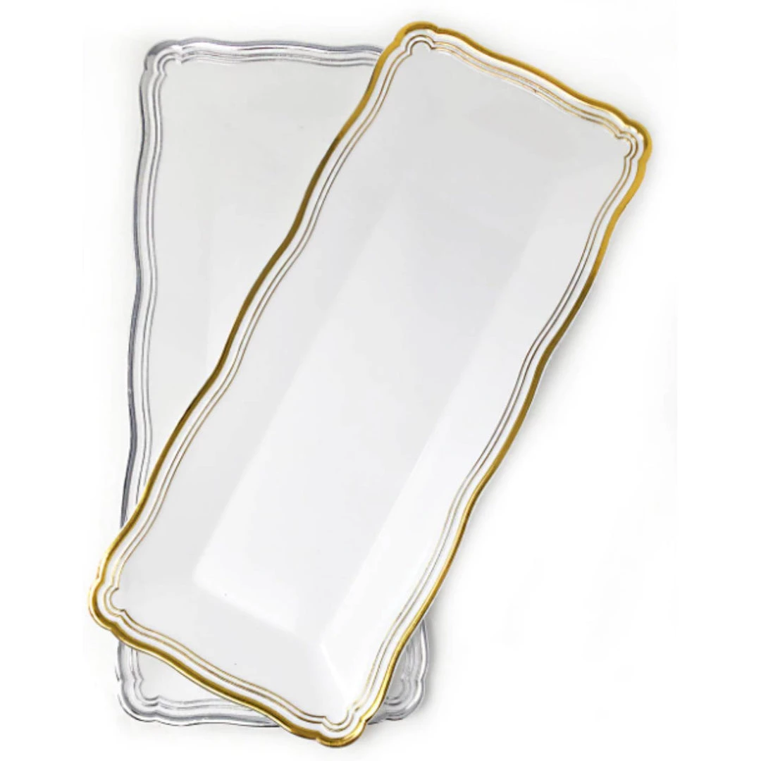 Aristocrat Collection Narrow Serving Trays White & Gold Rim