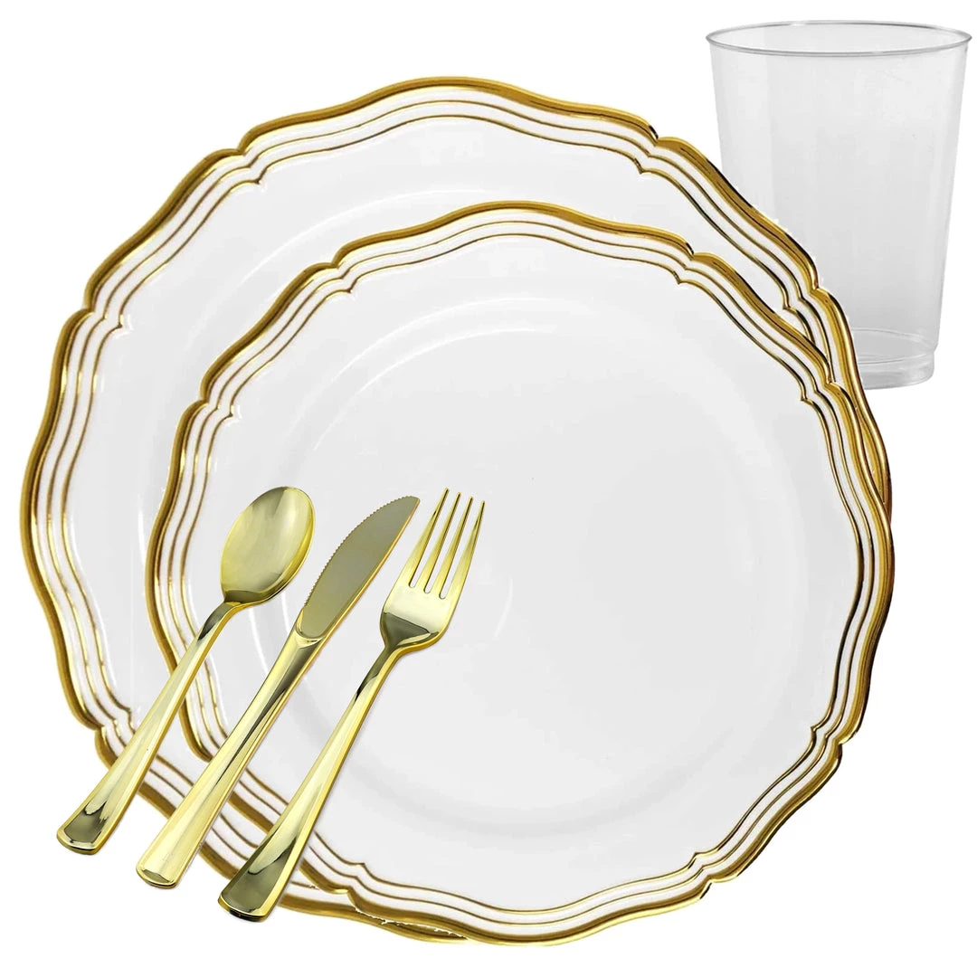 Set your table with Elegance!! Enjoy our new line of Decorline Elegant Disposable Aristocrat Dinner Plates. This unique White and Gold plate is great to use at any formal function. Perfect for Weddings, Dinners, Parties etc.