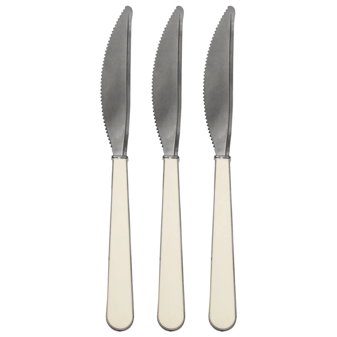 Decorline Clearance Sale SALE Duo Fancy Handle Plastic Cutlery Knives Silver White Light Weight 20 Count