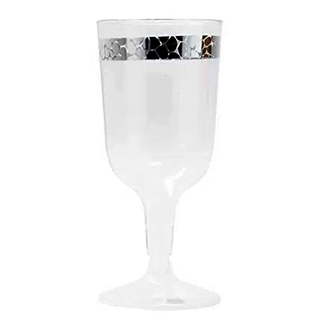 Wine Glasses, Silver Lace Border, Perfect for weddings, dinners, parties, Christmas, New Year, Valentine’s Day, Superior quality rigid plastic.