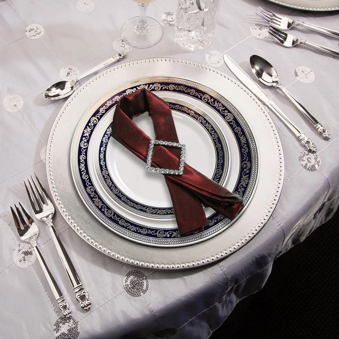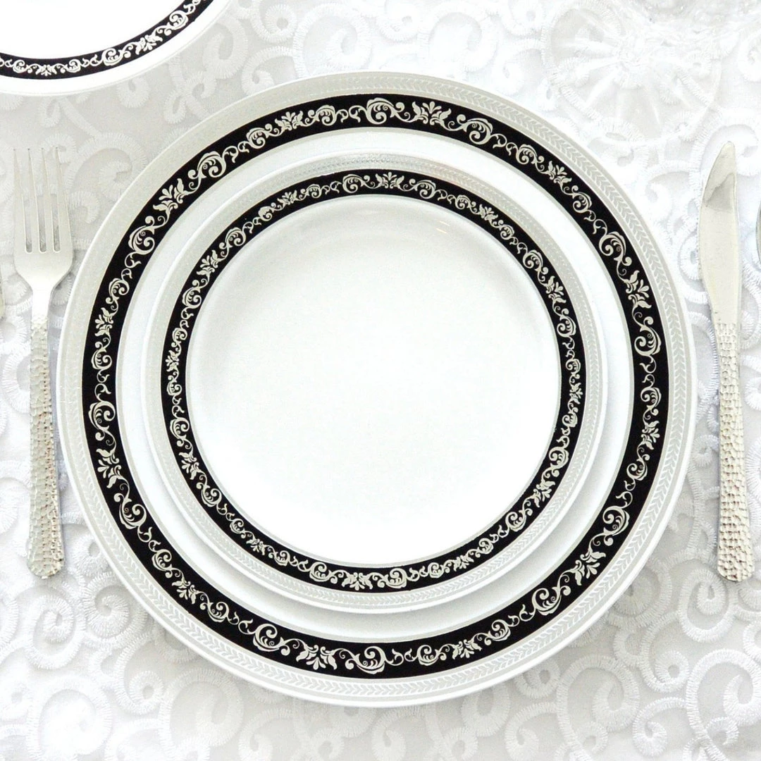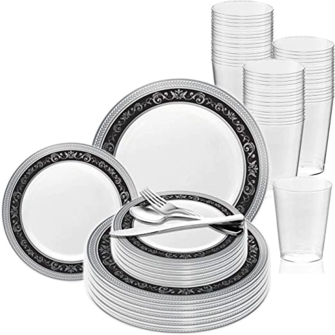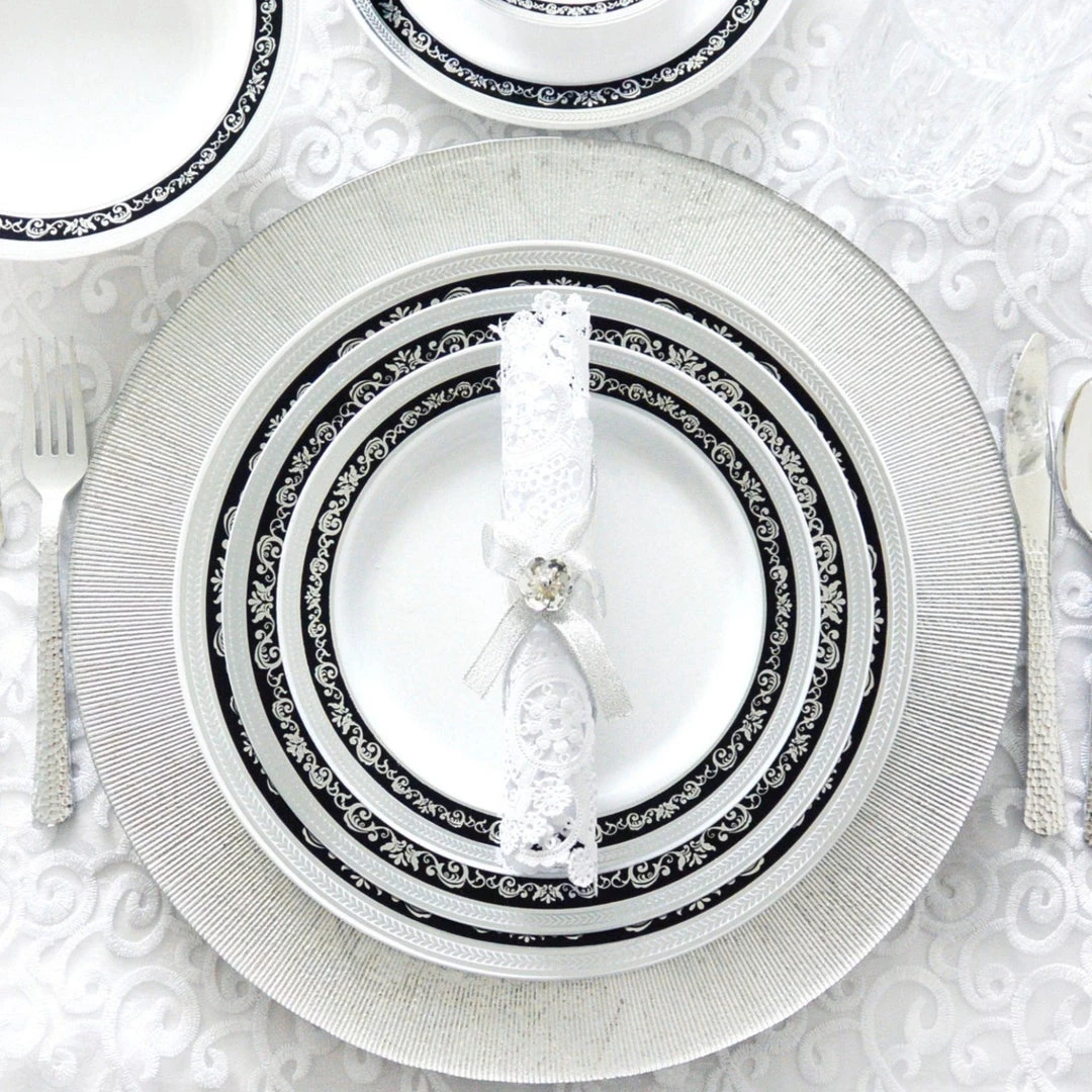 Elegant plastic disposable plate with nice design. Disposable plates are the most convenient when preparing for an event. Your table will have the sumptuous look of real China for a lesser significant cost. Elegant design, ideal for celebrations such as weddings, special event dinners, Christmas, New Year and Valentine’s Day, birthday parties…They can also be used for all outdoor activities like barbecues, camping, village – garden or fire festivals.