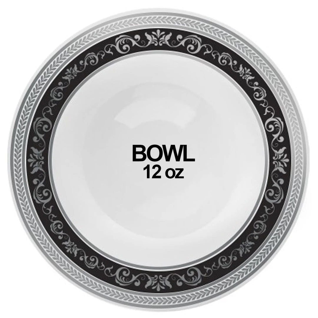 - Elegant white soup bowl 400ml, royal black-silver pattern edge