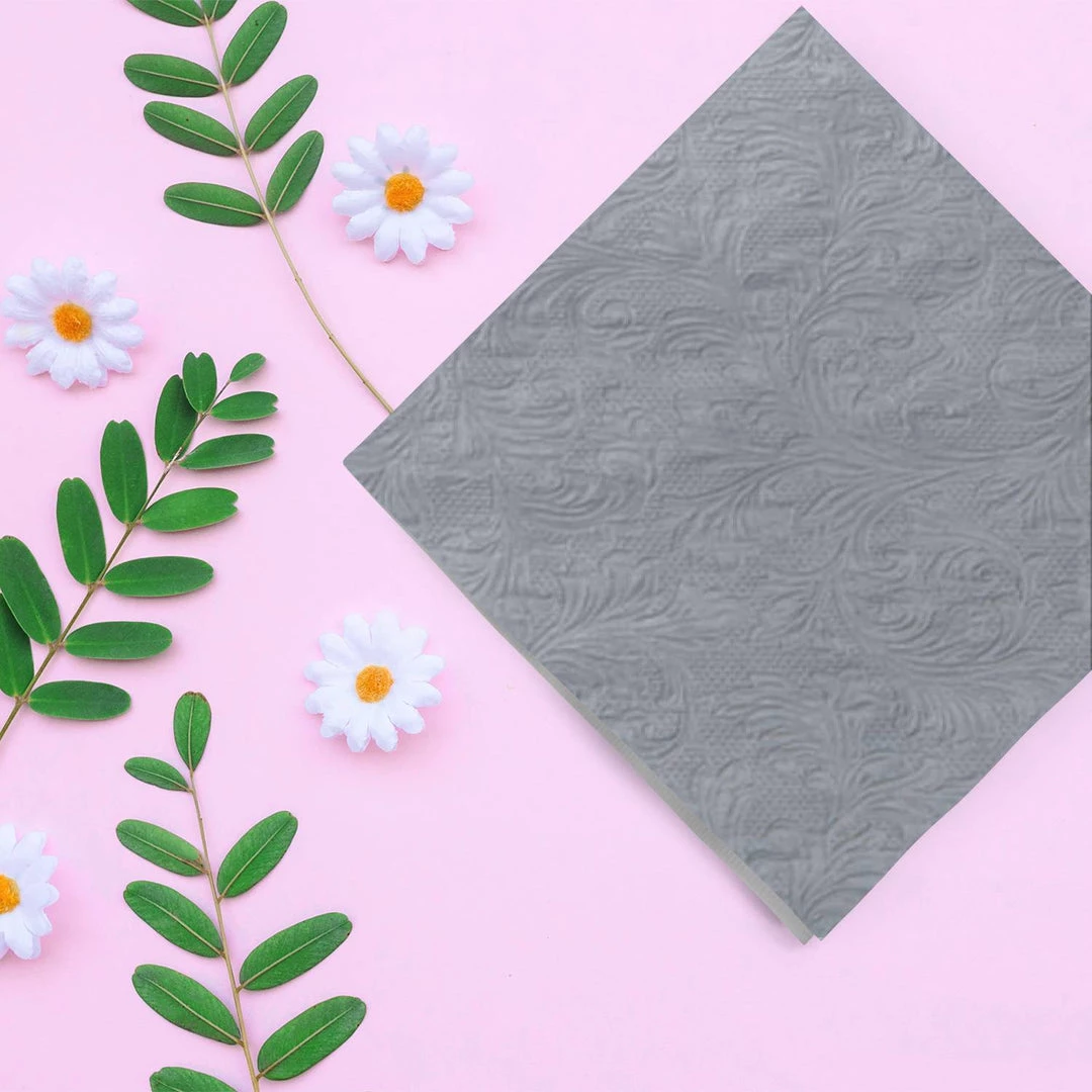 20 Fiorentina Uni Silver paper napkins measuring 33 cm x 33 cm approximately They have 3 folds and are ideal for decorating a table. They can also be used for gluing on wooden supports