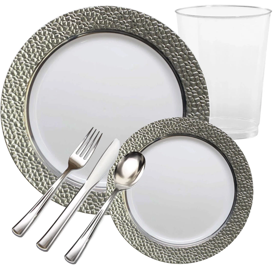 - Hammered Collection Dinner Plate White Silver 10.25″ DE2705