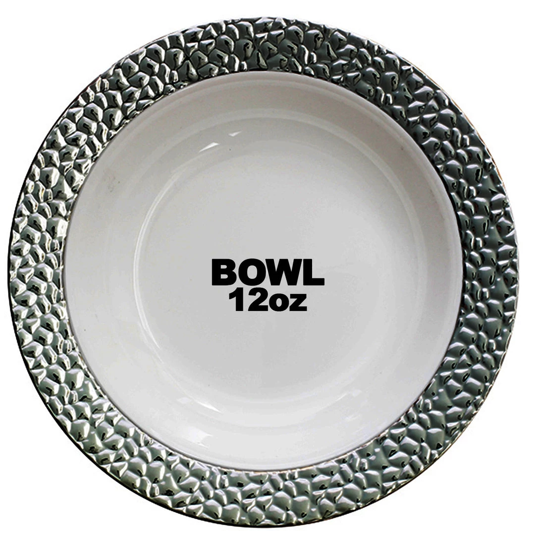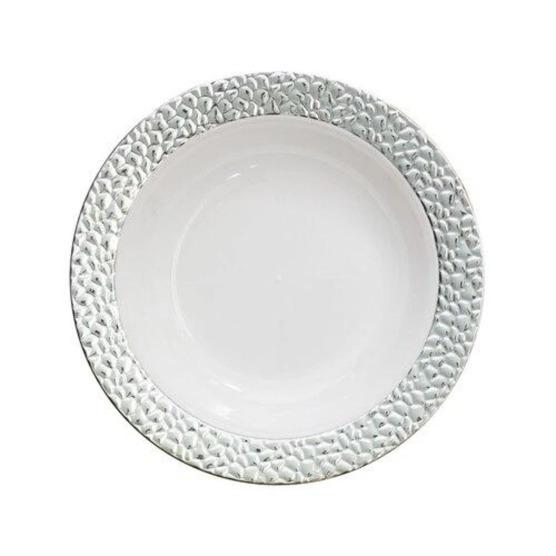 - Silver hammered effect rim, white bowl