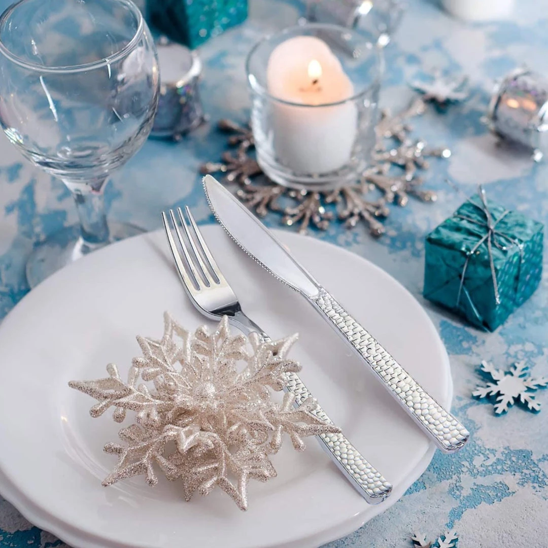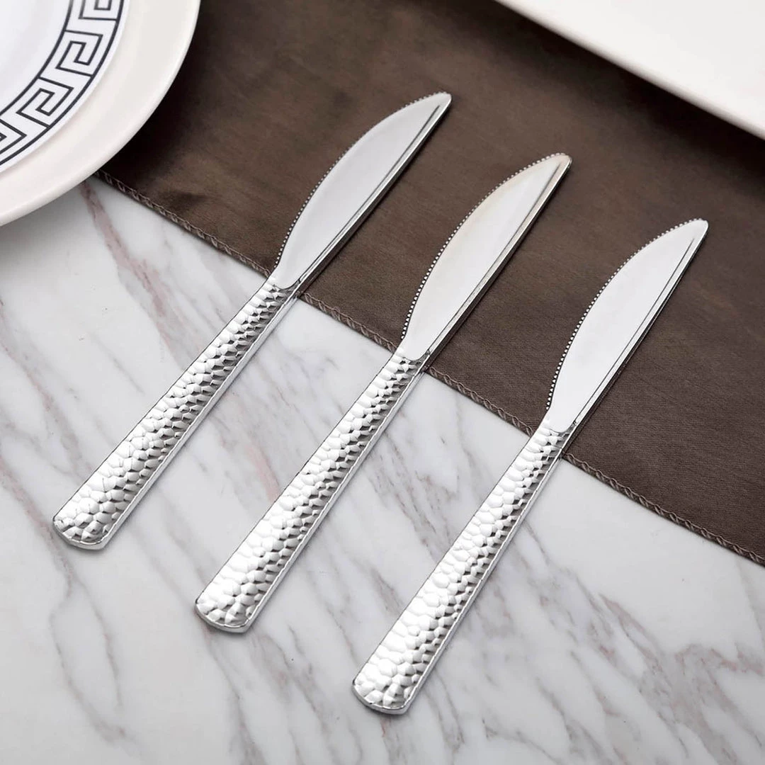 Decorline SALE Hammered Metallic Silver Plastic Knive Light Weight 20 Count
