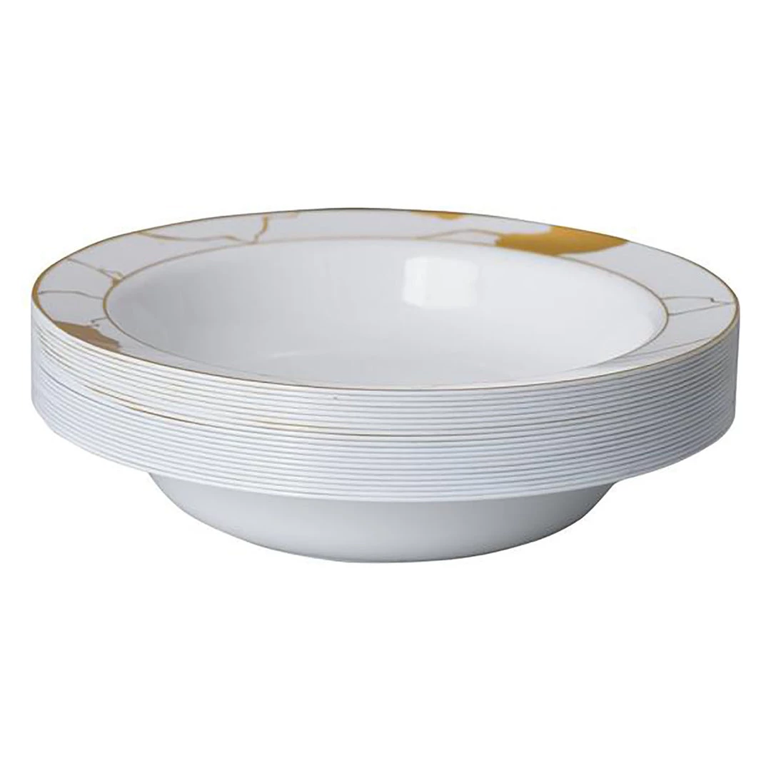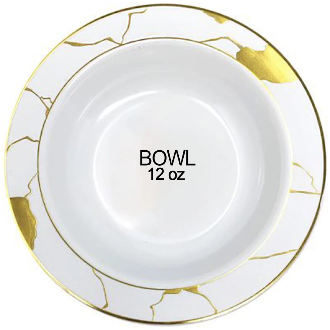 Decorline SALE Marble Collection Plastic Soup Bowls White & Gold 12 OZ 10 Count