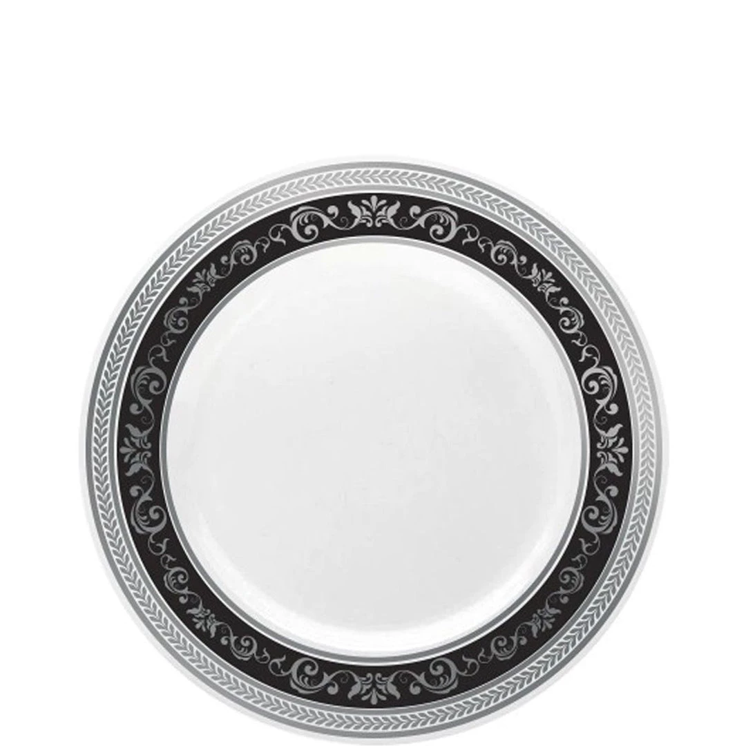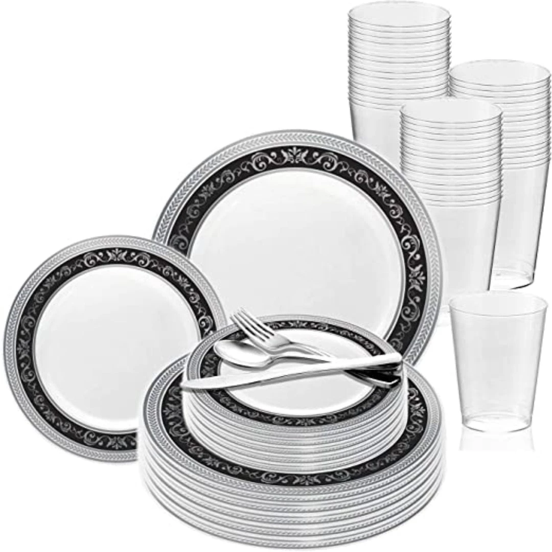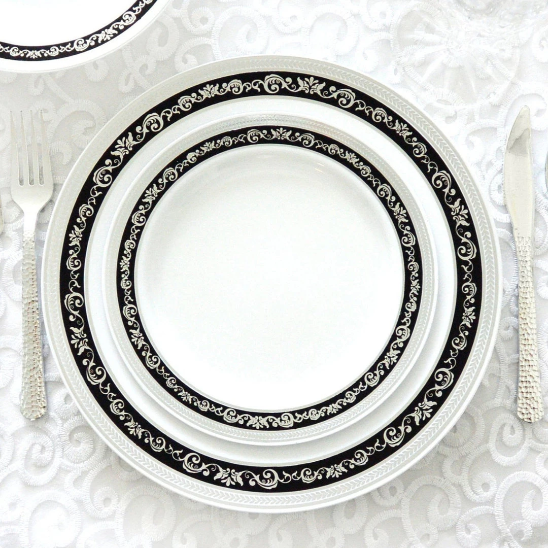 Elegant plastic disposable plate with nice design. Disposable plates are the most convenient when preparing for an event. Your table will have the sumptuous look of real China for a lesser significant cost.