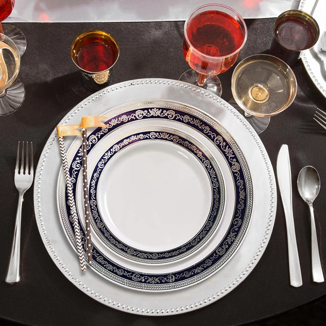 - Elegant white Plate Royal blue-silver pattern edge