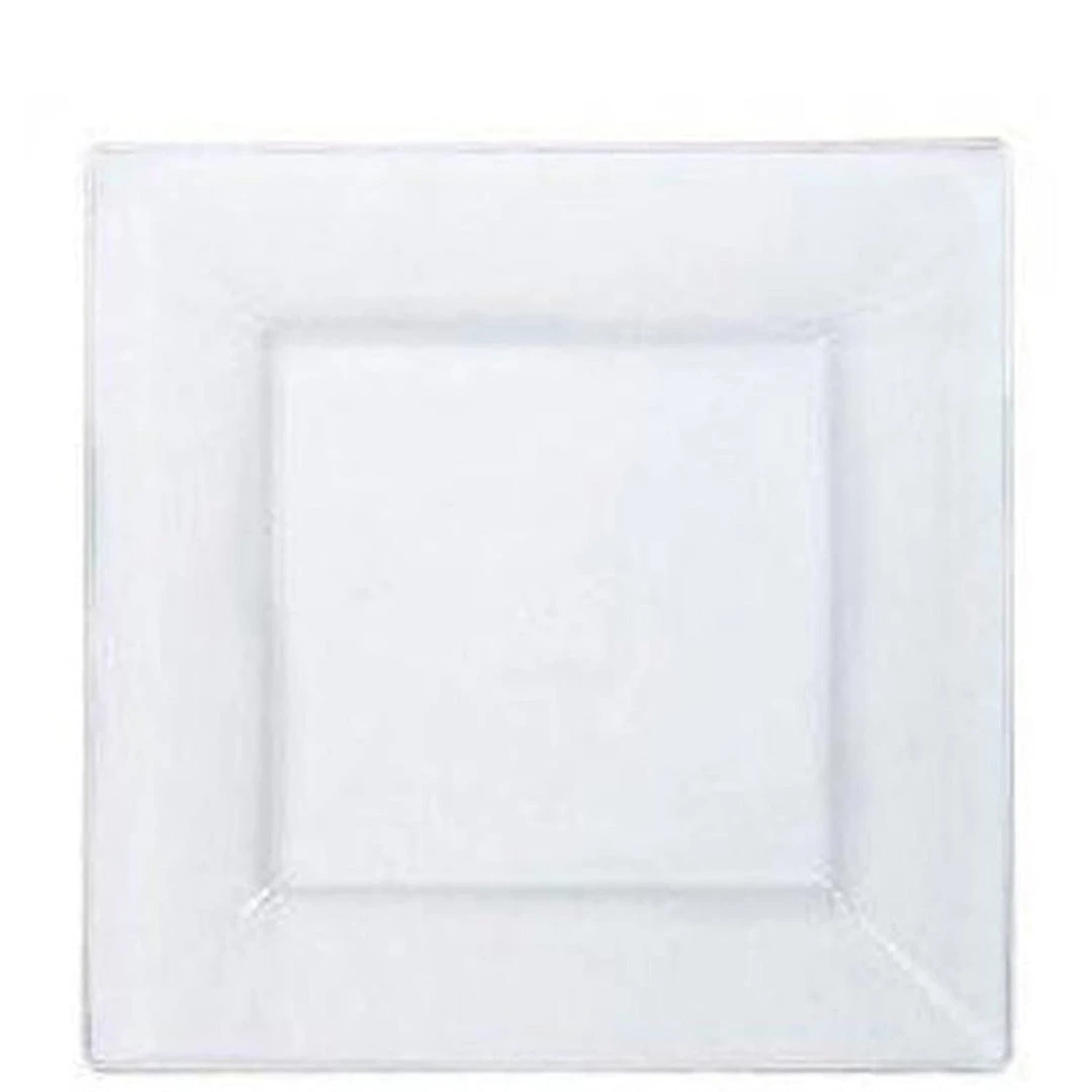 Lillian table settings clear 9.5″ Square plastic dinner plates, 10 count. Designed for all occasions, banquets, parties, upscale catering and home. Disposable product.