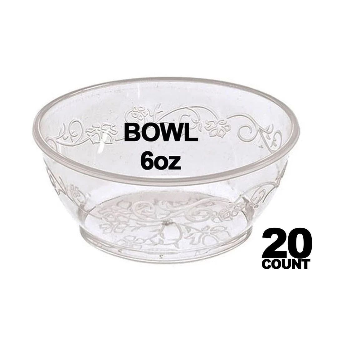 Bowl Clear 6oz 20Ct PS plastic. Produced with the highest grade materials. Premium quality – made from premium quality extra heavy duty.