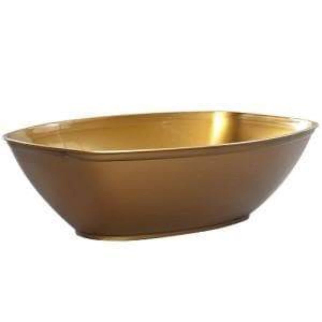 Party Dimensions White Plastic Gold Oval Luau Bowl, single count. Designed for all occasions, banquets, dinners, parties, upscale catering and home. Disposable Product.