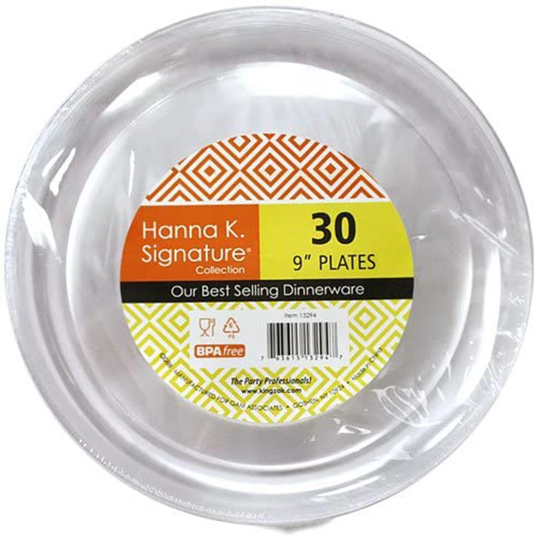 Hanna K Clear Dinnerware 6″ Buffet Plate Plastic, 40 Count. Hard Plastic. Also comes in 6″. Designed for all occasions, banquets, parties, upscale catering and home. Disposable. Great choice for buffets and events.