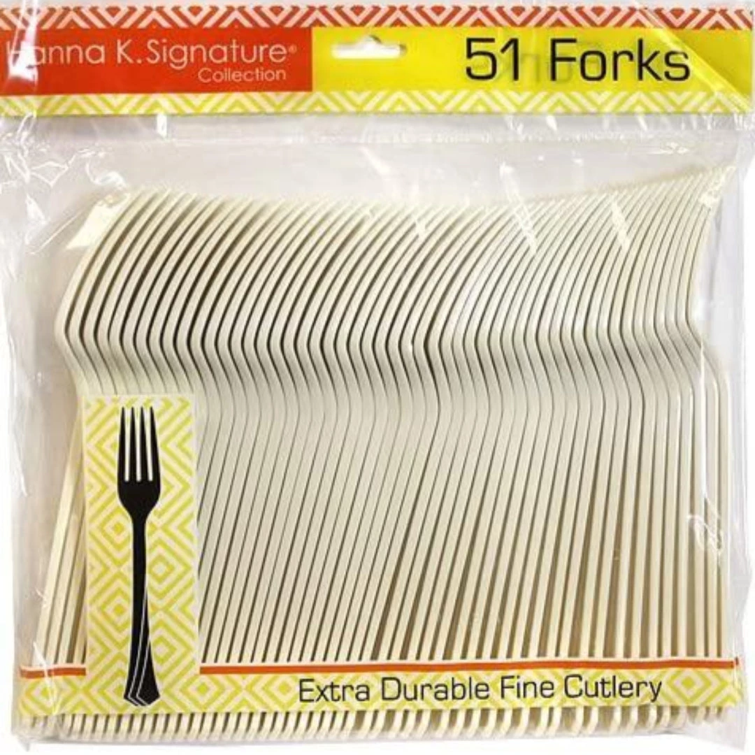 Hanna K. Signature Ivory Heavyweight Plastic Fork, 51 Count. Designed for all occasions, banquets, dinners, parties, upscale catering and home.