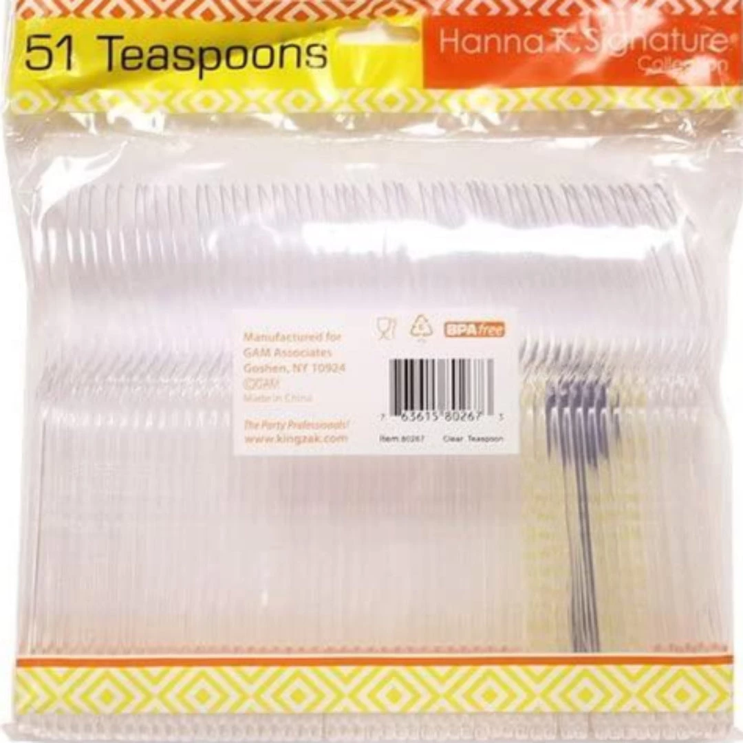 Hanna K. Signature Clear Heavyweight Plastic Teaspoon, 51 Count. Designed for all occasions, banquets, dinners, parties, upscale catering and home.