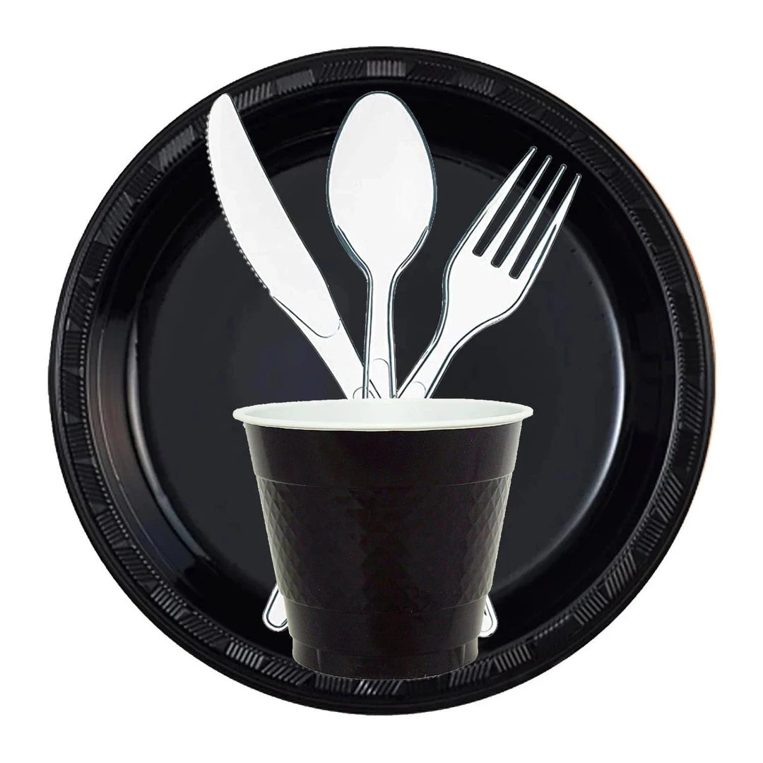 Hanna K 10″ Plastic Plate, Black, 50 Count. Dinnerware in a full array of dazzling colors. Designed for all occasions, banquets, parties, upscale catering and home. Disposable. Item comes in 13 colors. Item is part of a matching set. Get the whole set, which includes Plates (10″, 9″, 7″), 12 ounce bowl, 9 ounce and 18 ounce cups.