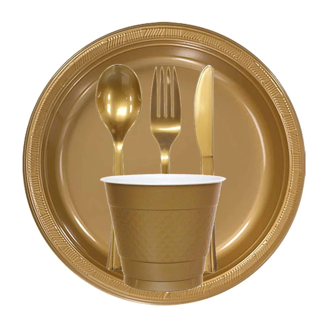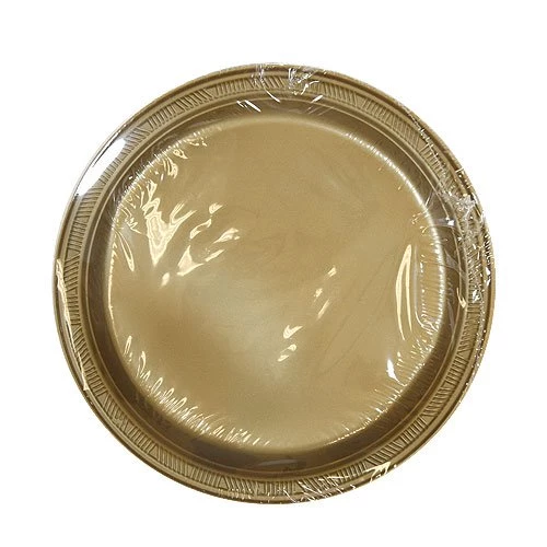 Hanna K 10″ Plastic Plate, Gold, 50 Count. Dinnerware in a full array of dazzling colors. Designed for all occasions, banquets, parties, upscale catering, and home. Disposable. Item comes in 13 colors. Item is part of a matching set. Get the whole set, which includes Plates (10″, 9″, 7″), 12 ounce bowl, 9 ounce and 18 ounce cups.