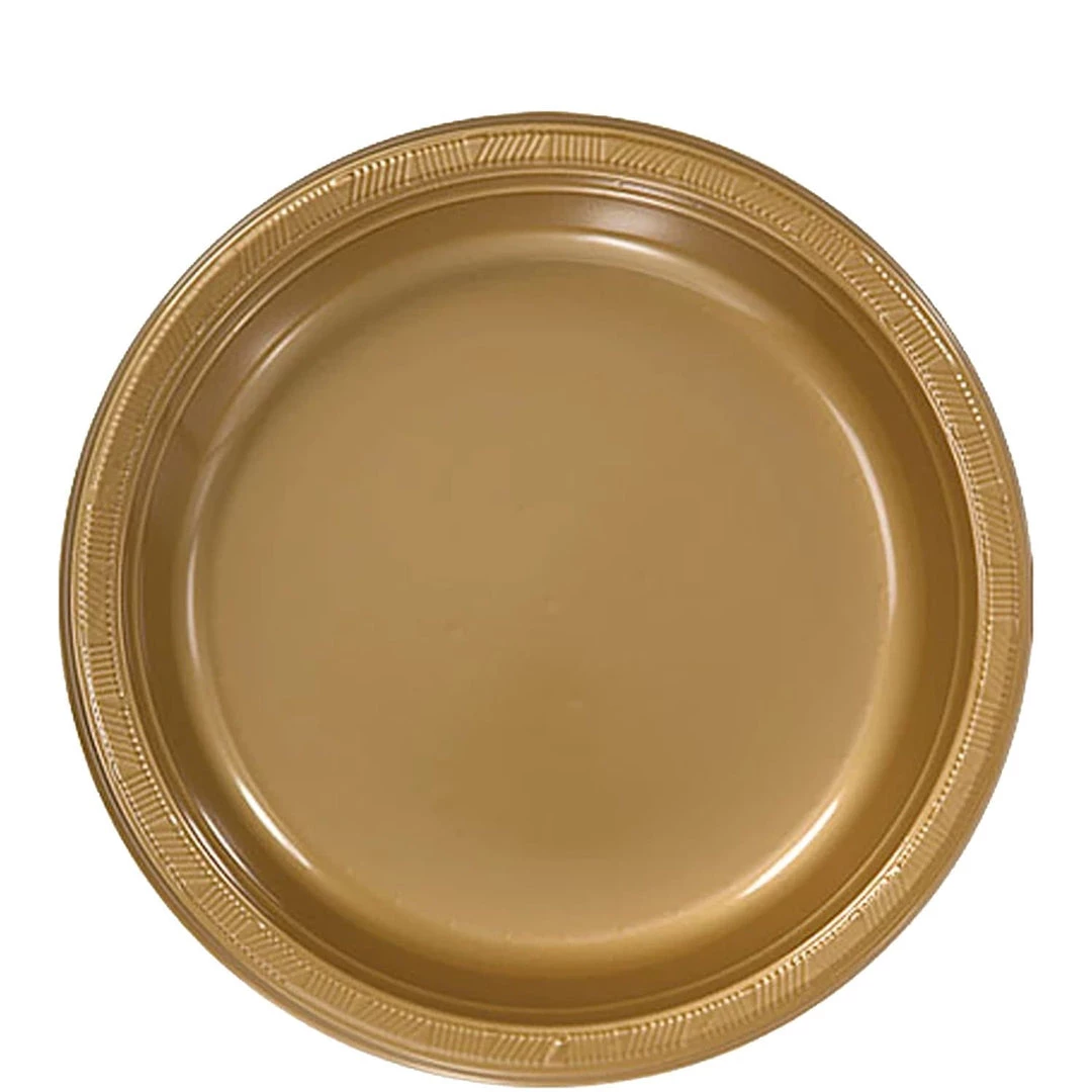 Hanna K 9″ Plastic Plate, Gold, 50 Count. Dinnerware in a full array of dazzling colors. Designed for all occasions, banquets, parties, upscale catering, and home. Disposable. Item comes in 13 colors. Item is part of a matching set. Get the whole set, which includes Plates (10″, 9″, 7″), 12 ounce bowl, 9 ounce and 18 ounce cups.