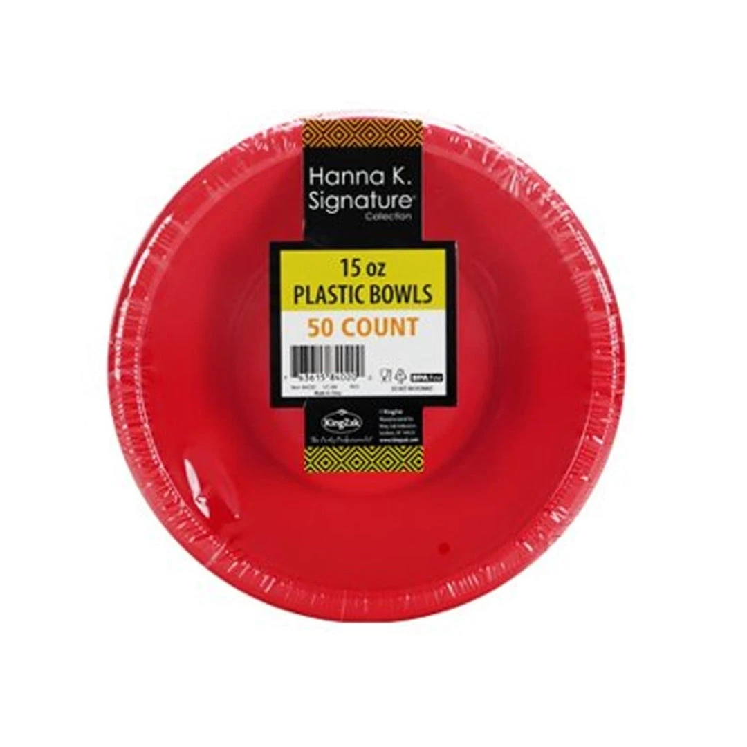 Hanna K 12 ounce Plastic Bowl, Red, 50 Ct. Dinnerware in a full array of dazzling colors. Designed for all occasions, banquets, parties, upscale catering and home. Disposable.