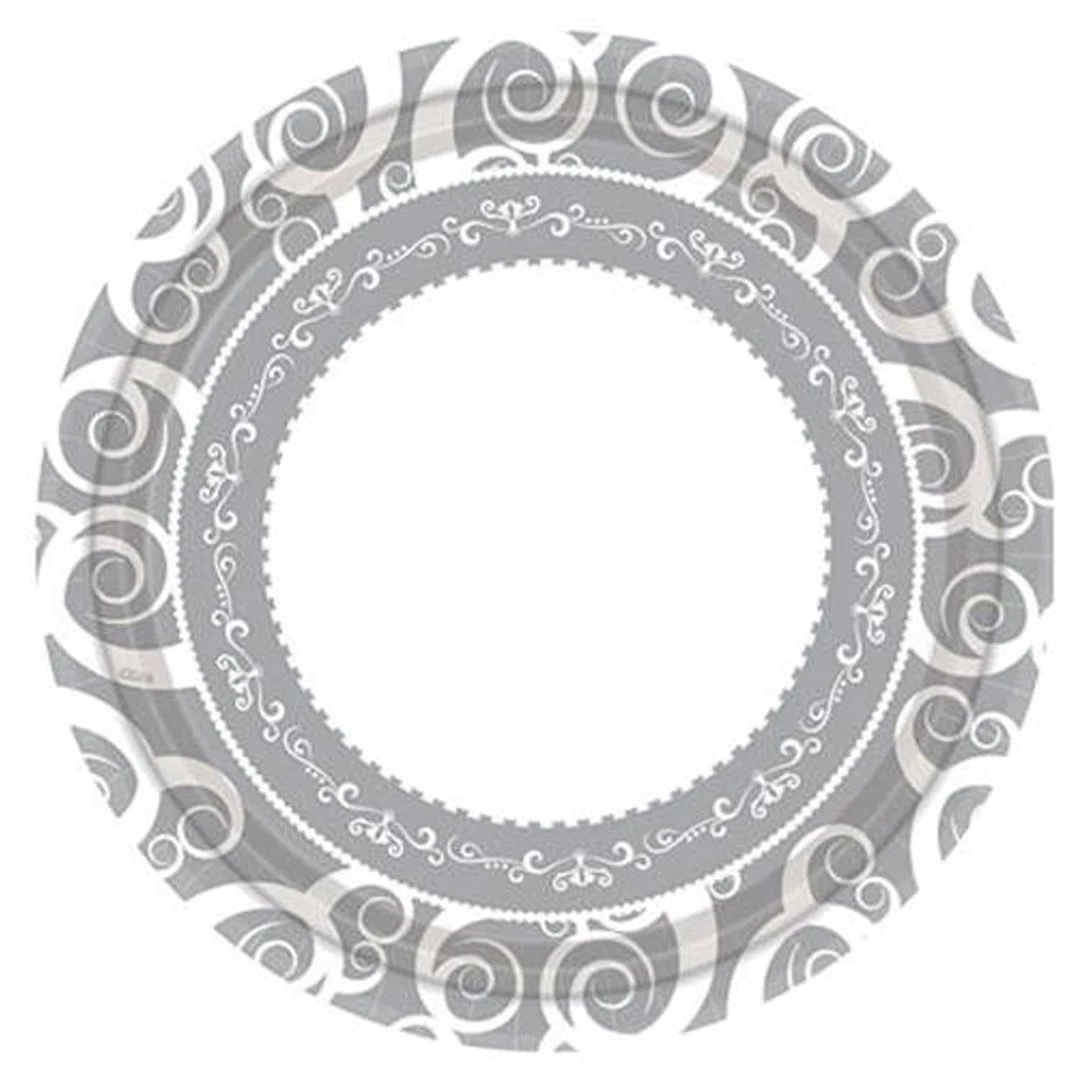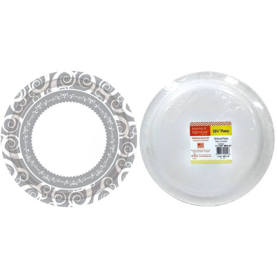Hanna k. Signature 10.25″ silver medley paper plate 18 Ct. Designed for all occasions, banquets, dinners, parties, upscale catering and home.