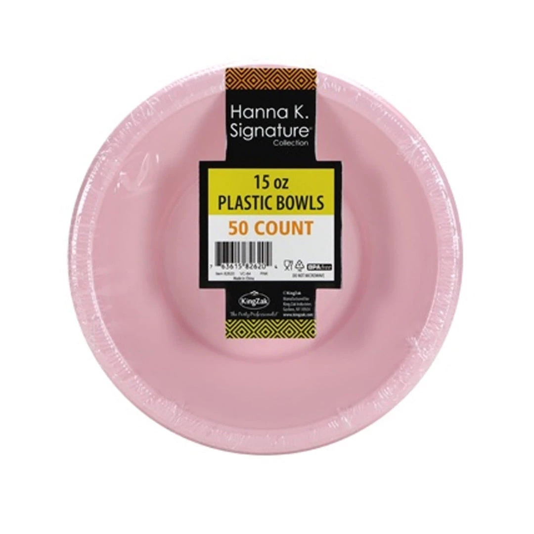 Hanna K 15 ounce Plastic Bowl, Pink, 50 Ct. Dinnerware in a full array of dazzling colors. Designed for all occasions, banquets, parties, upscale catering and home. Disposable.