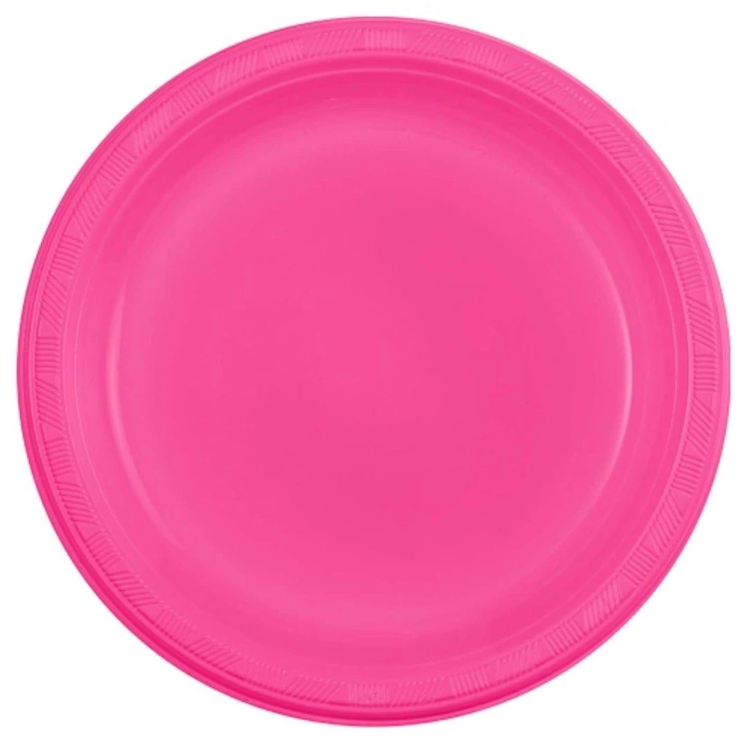 Hanna K 9″ Plastic Plate, Hot Pink, 50 Count. Dinnerware in a full array of dazzling colors. Designed for all occasions, banquets, parties, upscale catering and home. Disposable. Item comes in 13 colors. Item is part of a matching set. Get the whole set, which includes Plates (10″, 9″, 7″), 12 ounce bowl, 9 ounce and 18 ounce cups.