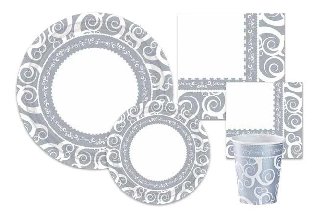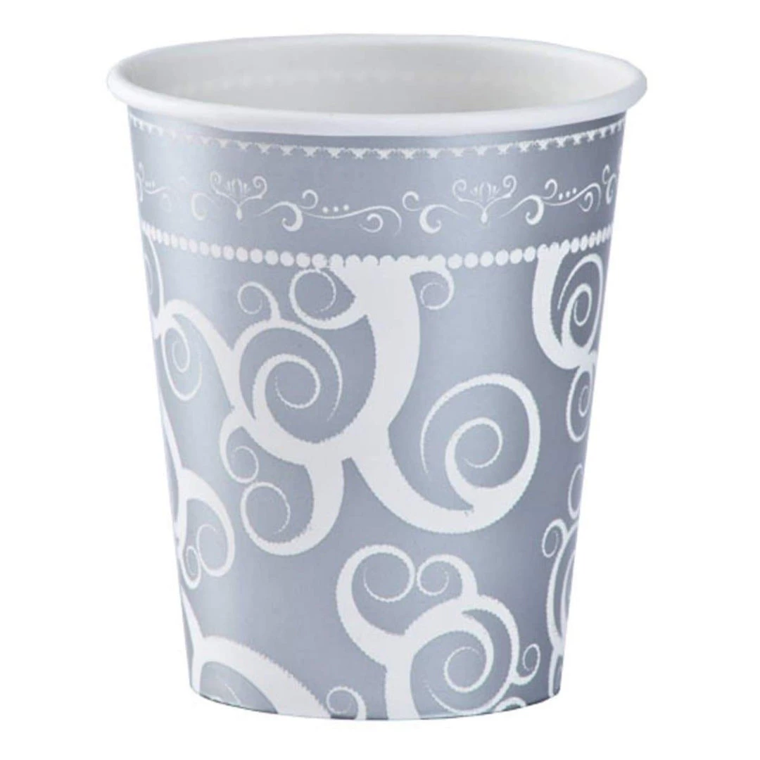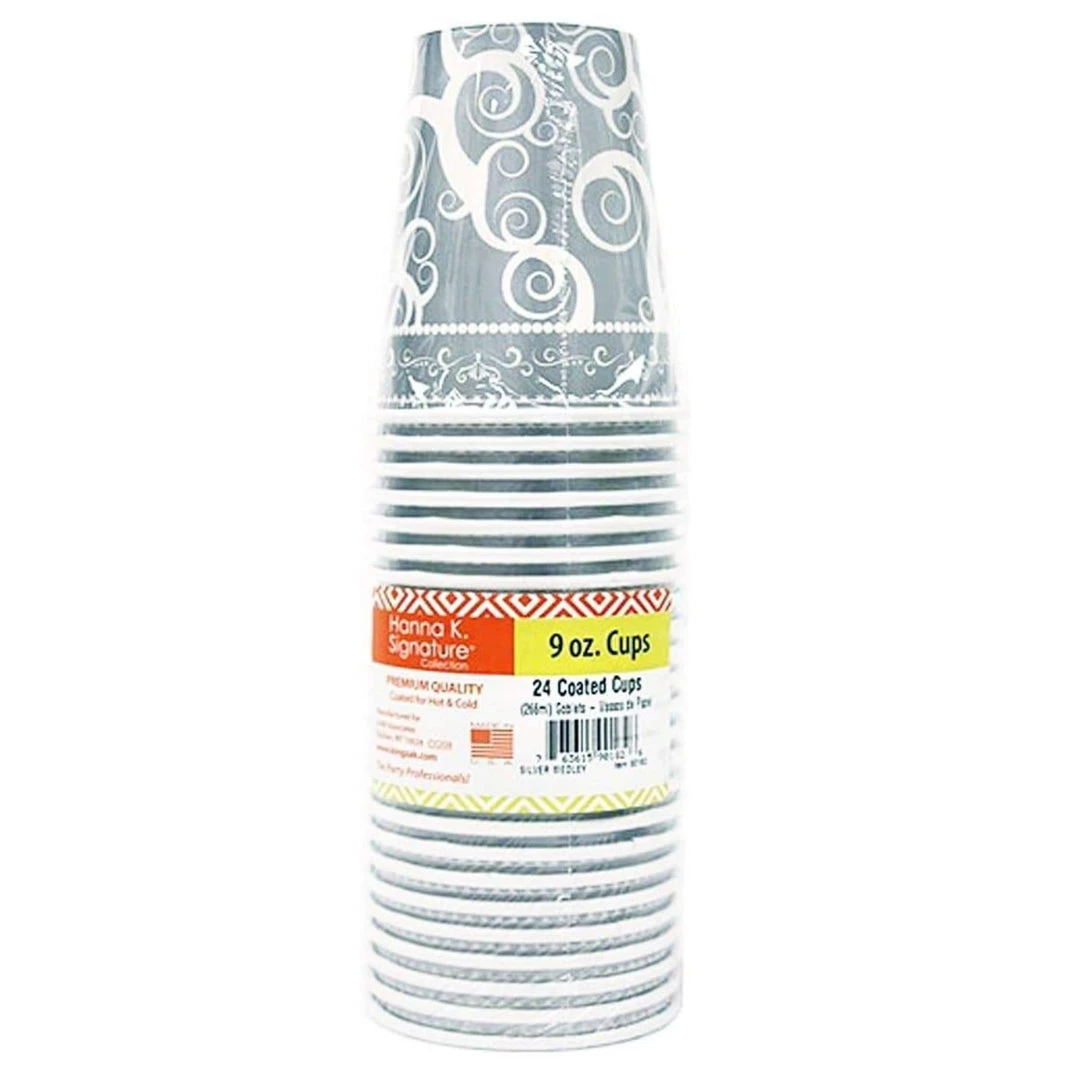 Hanna k. Signature silver medley 9 oz. Paper hot/cold cup, 24 count. Part of set including a 10.25″ Plate, 7″ plate, lunch and beverage napkins and 9 oz. Cup. Designed for all occasions, banquets, dinners, parties, upscale catering and home.