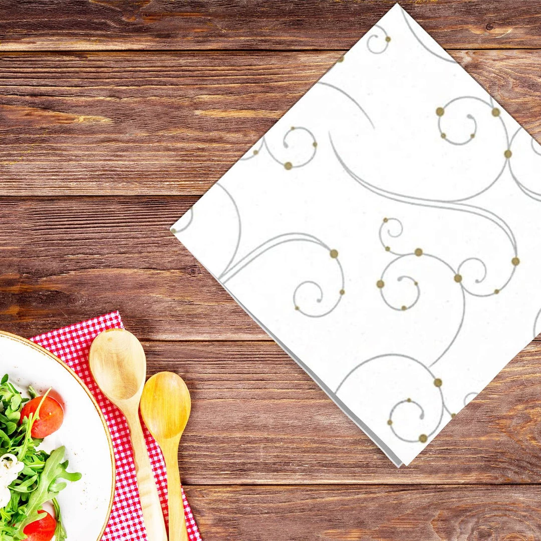 Hanna K. Paper Beverage Napkin, “Swirls & Pearls”, 75 Count. Part of a set that includes: Plates, Cups and Bistro, Beverage and Lunch Napkins. Designed for all occasions, banquets, dinners, parties, upscale catering and home. Disposable Products.