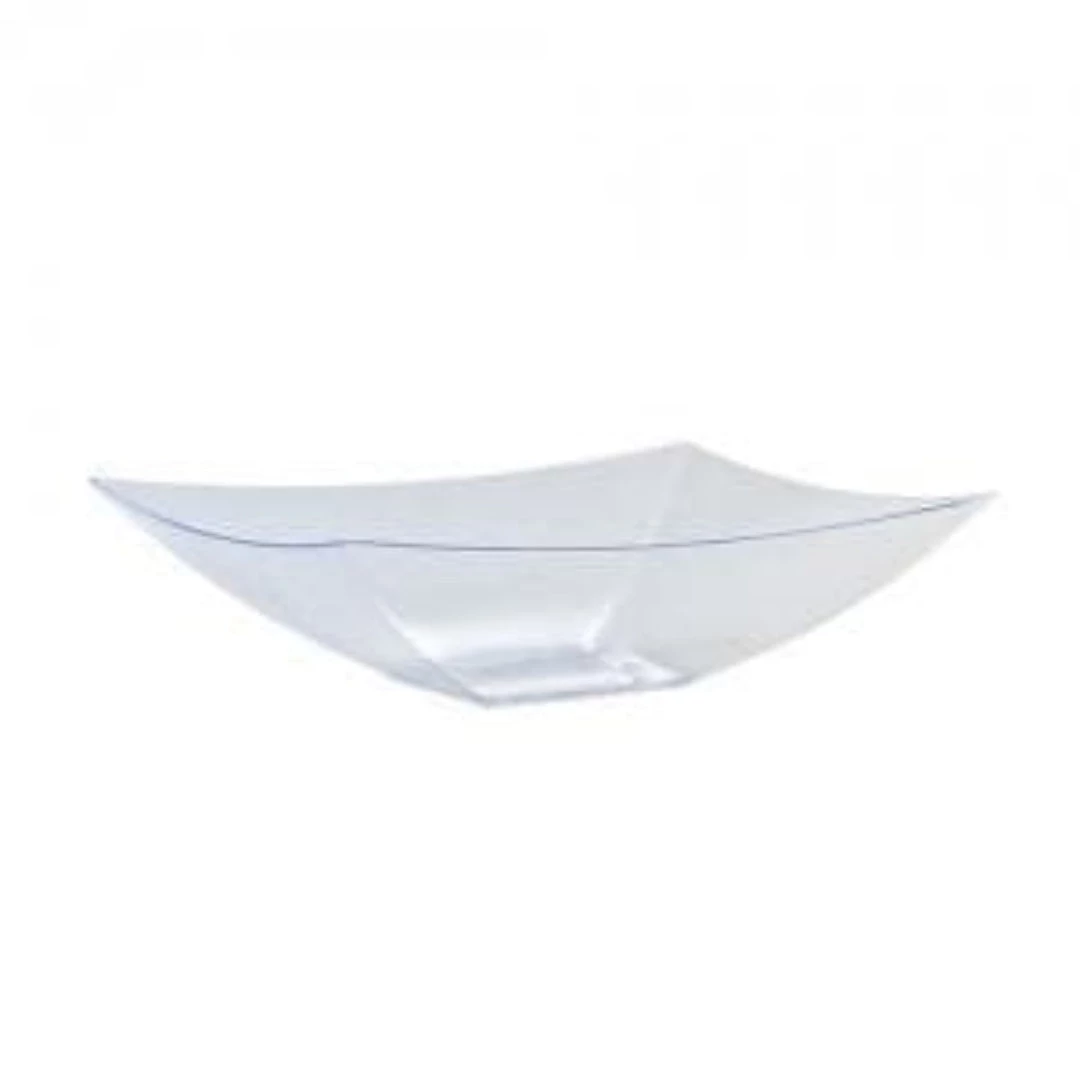 Exquisitely Curved Rectangular Servingware, 64 oz Clear Plastic Serving Bowls, One Case of 50 Pieces, disposable plastic great for all your catering and party needs.