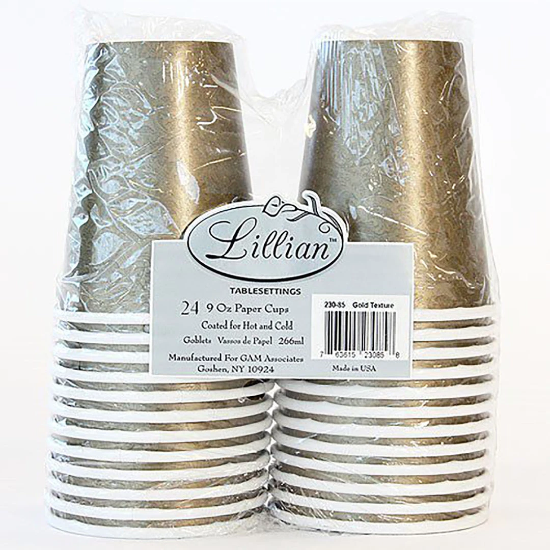 Lillian Gold Texture 9-Ounce Twin Stack Paper Cup, 24 pieces. Designed for all occasions, banquets, parties, upscale catering and home. Disposable.