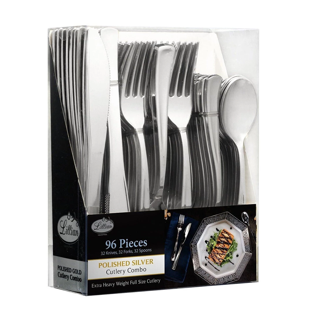 Plastic Cutlery Silverware Extra Heavyweight Disposable Flatware, Full Size Cutlery Combo 96 Count