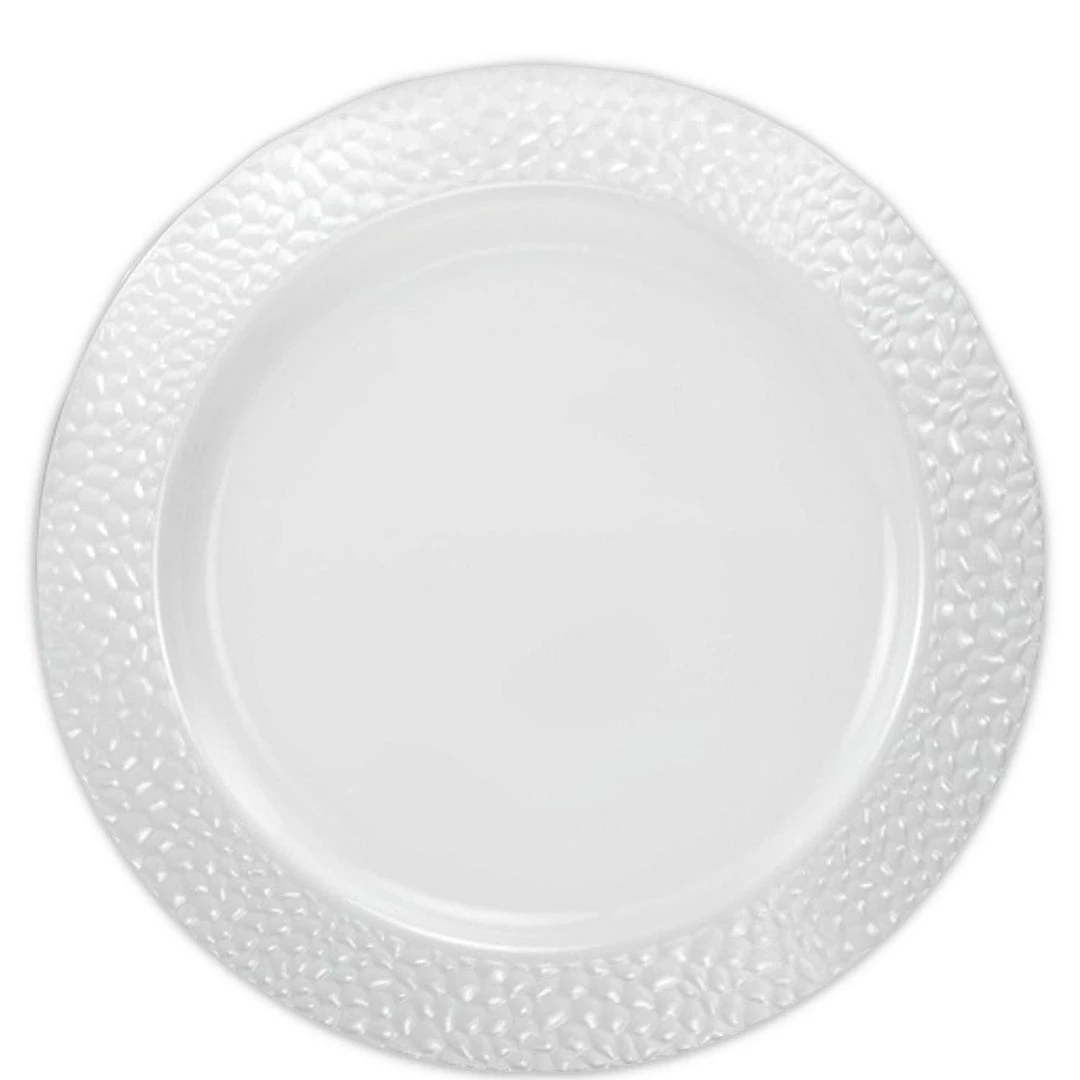 Providing an elegant look of china at a fraction of the cost, these pebbled plates give you the appearance you want with the convenience you need and make it ideal for elegant dining environments where real china simply isn’t feasible or desired. These plates are made of durable heavy weight plastic, making it ideal for serving hearty salads and sandwiches. Use it for entire meals, or even for shared appetizers. The ample diameter makes it great for breakfast, lunch, and dinner service. The design is sure to draw attention while adding an upscale look to your wedding receptions, banquets, or other catered events.It easy to clean since they are ultra-durable plastic dishes, you can use them at family events. Have fun when entertaining your friends and family this season by making your preparation and clean up simple.