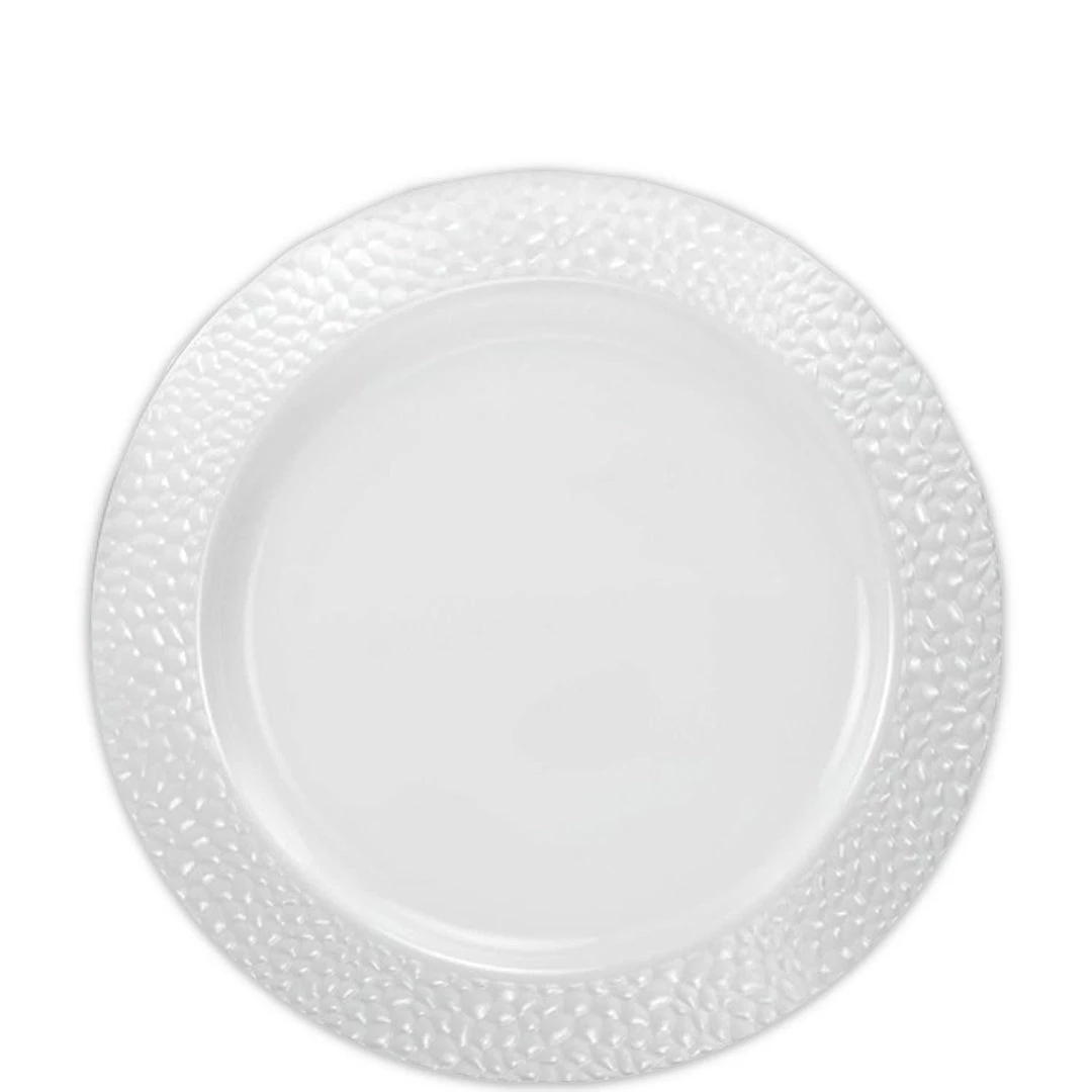 Providing an elegant look of china at a fraction of the cost, these pebbled plates give you the appearance you want with the convenience you need and make it ideal for elegant dining environments where real china simply isn’t feasible or desired. These plates are made of durable heavy weight plastic, making it ideal for serving hearty salads and sandwiches. Use it for entire meals, or even for shared appetizers. The ample diameter makes it great for breakfast, lunch, and dinner service. The design is sure to draw attention while adding an upscale look to your wedding receptions, banquets, or other catered events.It easy to clean since they are ultra-durable plastic dishes, you can use them at family events. Have fun when entertaining your friends and family this season by making your preparation and clean up simple.