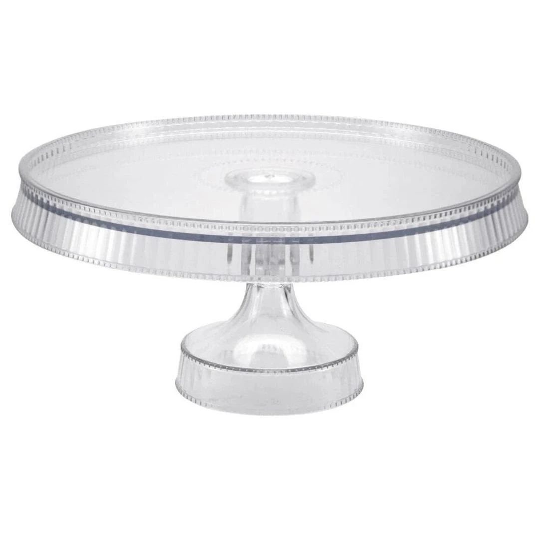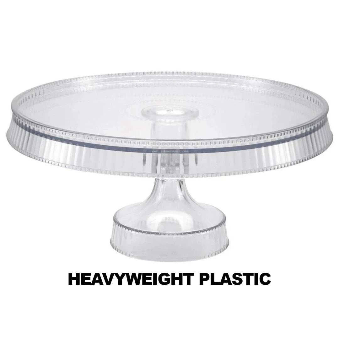 Enhance the visual appeal of your scrumptious and mouth watering cakes, cupcakes, muffins, and other yummy delicacies by presenting on these beautiful clear small round cake stands! Versatile in application and sturdy in construction, this fabulous cake stand will dress up your dessert tables and tabletops to perfection with its seamless luster and elegant design. Made from premium quality plastic, this cake stand has a sturdy construction that can easily support heavy cakes and desserts. Ideal for use as a wedding party cake stand, as a baby shower cupcake tower, or to accentuate the dessert display at a buffet, this cake stand is conveniently disposable for a quick and easy post-event cleanup.