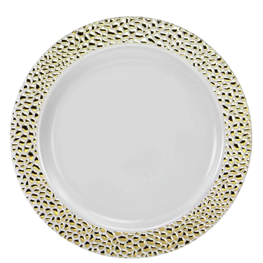Providing an elegant look of china at a fraction of the cost, these pebbled plates give you the appearance you want with the convenience you need and make it ideal for elegant dining environments where real china simply isn’t feasible or desired. These plates are made of durable heavy weight plastic, making it ideal for serving hearty salads and sandwiches. Use it for entire meals, or even for shared appetizers. The ample diameter makes it great for breakfast, lunch, and dinner service. The design is sure to draw attention while adding an upscale look to your wedding receptions, banquets, or other catered events.It easy to clean since they are ultra-durable plastic dishes, you can use them at family events. Have fun when entertaining your friends and family this season by making your preparation and clean up simple.