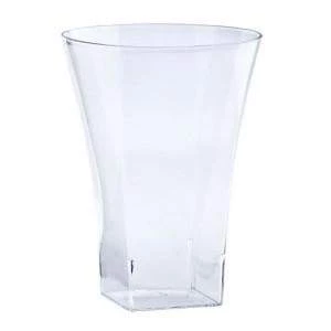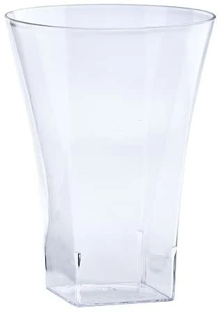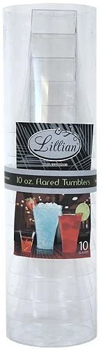 Lillian Clear Plastic 10-Ounce Square-Bottomed Flared Tumbler, 10 pieces. Add a bit of “Flare” to your drinks with this set of clear drink tumblers. Designed for all occasions, banquets, parties, upscale catering and home. Disposable.