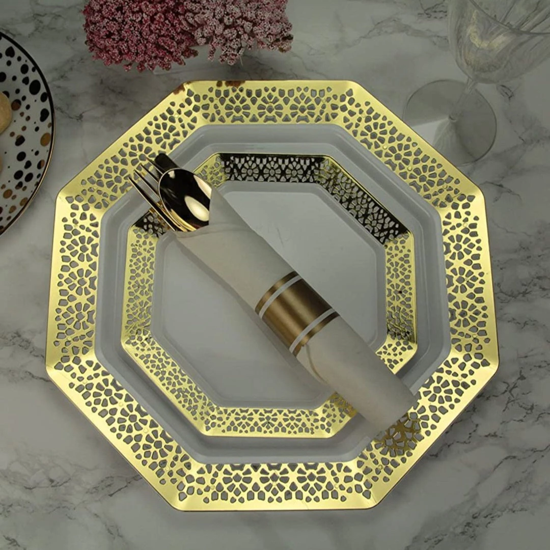 Pre-Rolled Cutlery And Napkin Set Gold 10pc