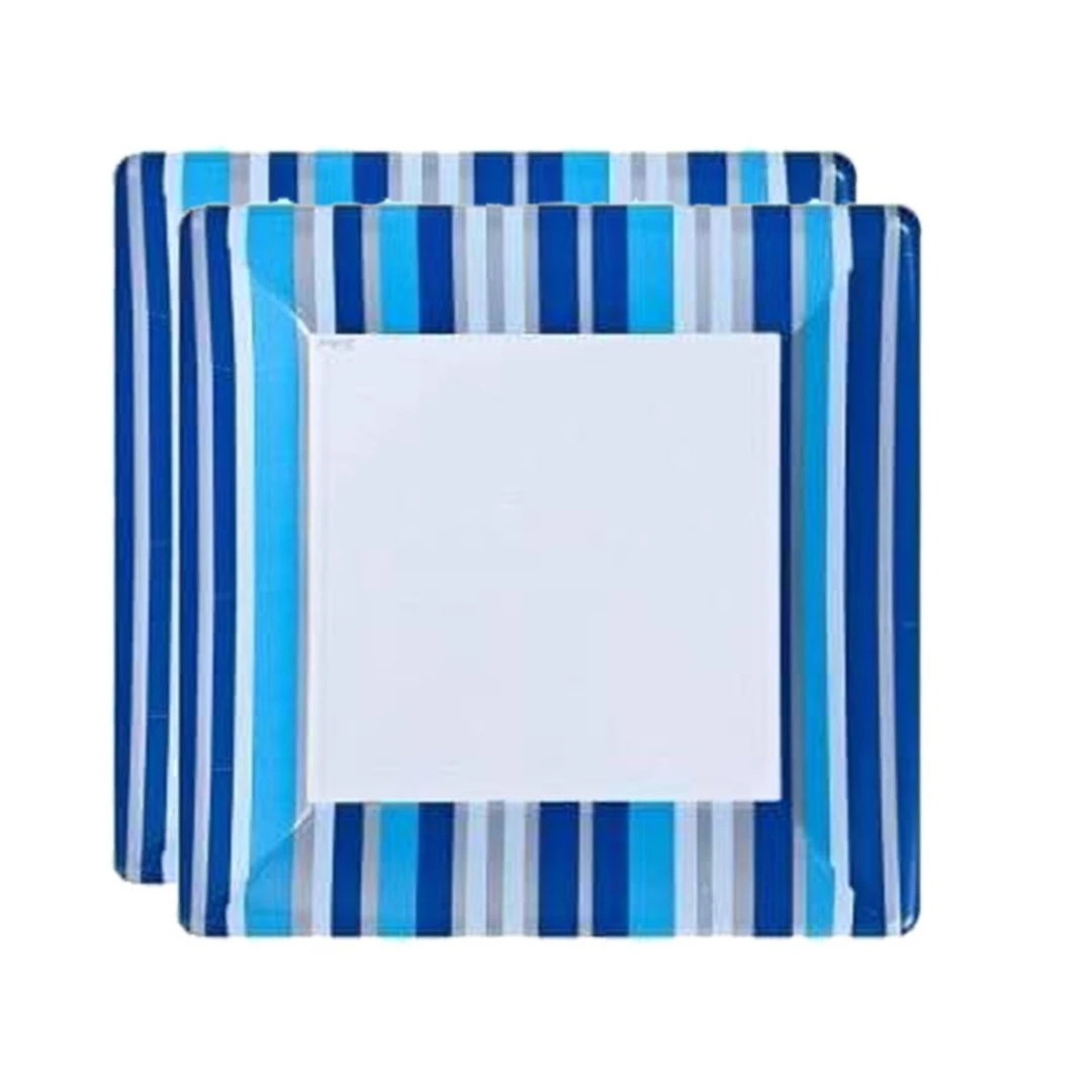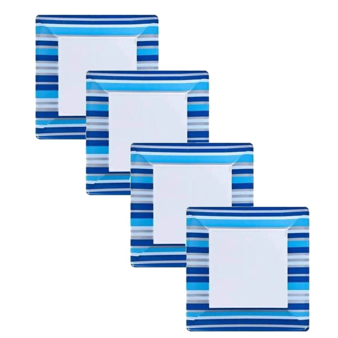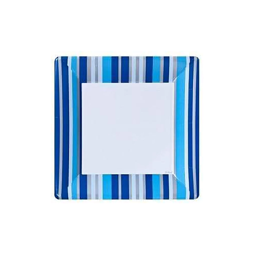 Lillian Blue Stripe 7″ Square Paper Plate, 24 pieces. Designed for all occasions, banquets, parties, upscale catering and home. Disposable.