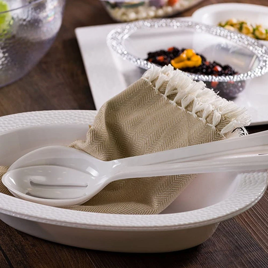 Lillian Plastic Salad Serving Spoon, Pearl, 1 unit. Designed for all occasions, banquets, parties, upscale catering, and home. Disposable.