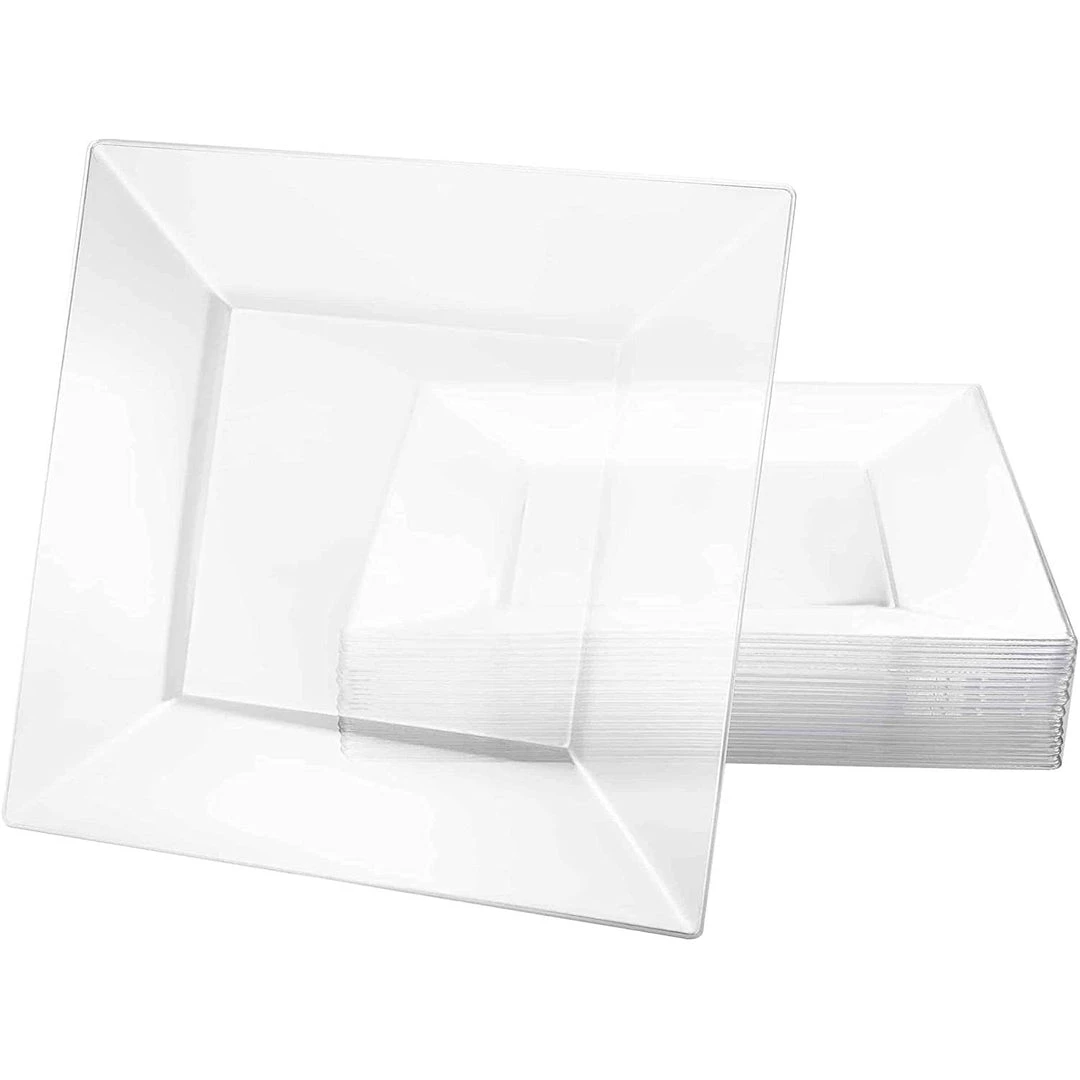 Lillian table settings clear 10.75″ Square plastic dinner plates, 10 count. Designed for all occasions, banquets, parties, upscale catering and home. Disposable product.