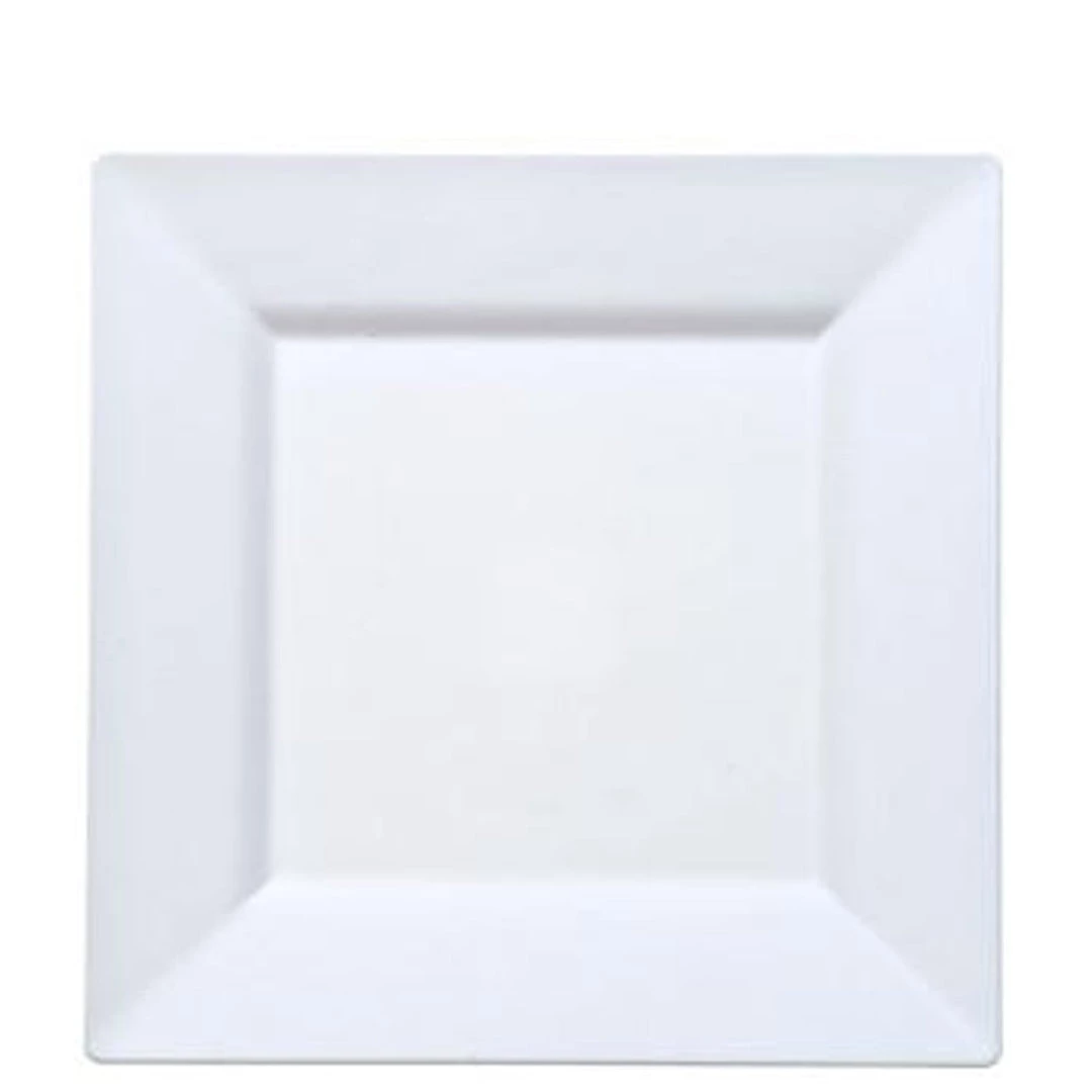 Lillian table settings pearl 9.5″ Square plastic dinner plates, 10 count. Designed for all occasions, banquets, parties, upscale catering and home. Disposable product.