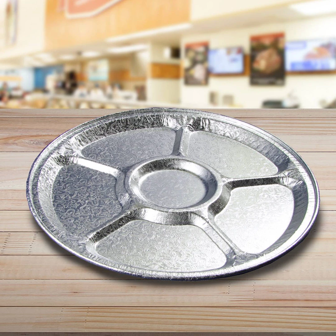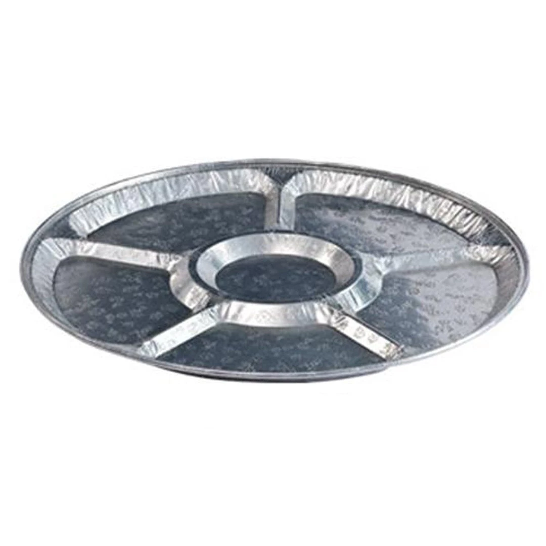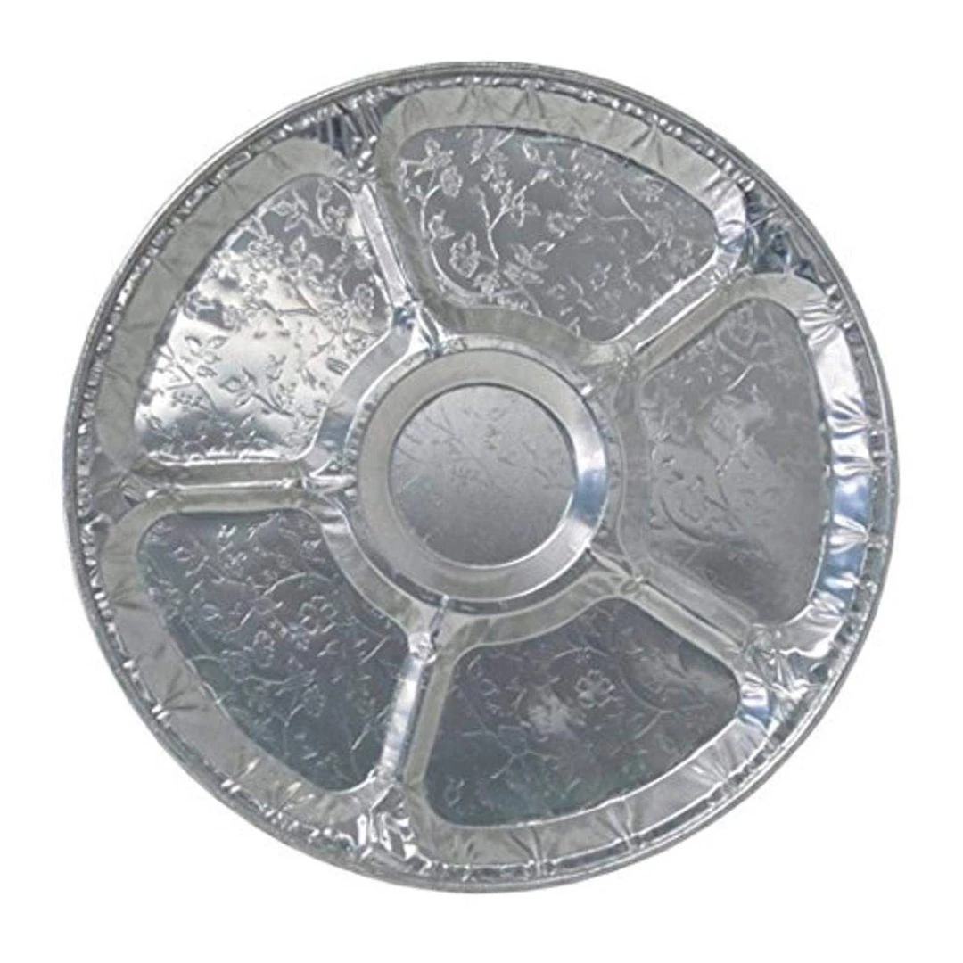 Party Dimensions 00553 16″ Disposable Aluminum Compartment Platter, Case of 5. This item is available in 3 sizes and two styles, all have coordinating lids. Available in 12″, 16″ and 18″ in both a flat tray style and compartment tray style. Great for Picnics, BBQ, Dinner Parties, Holidays, Offices, Kitchens and more! Disposable Product. 5 Pack. Size: 16.25 X 16.25 X .38, Material: Aluminum, Shape: Round