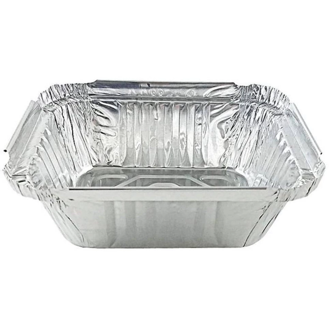 - Top outside dimensions (rim to rim): 5-3/4” x 5” Top inside dimensions: 5” x 4” Depth: 1-1/2” Capacity: 15 fluid oz 30 gauge aluminum foil
