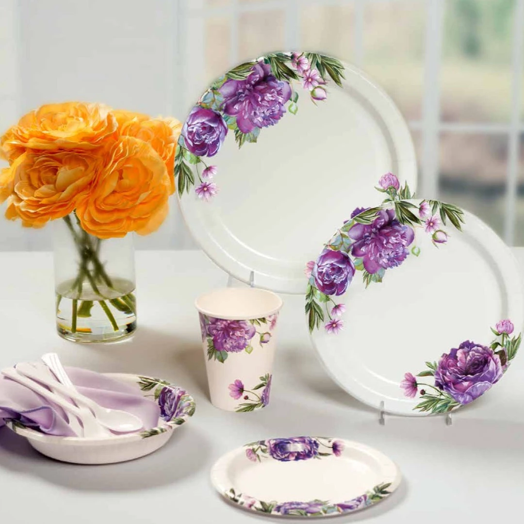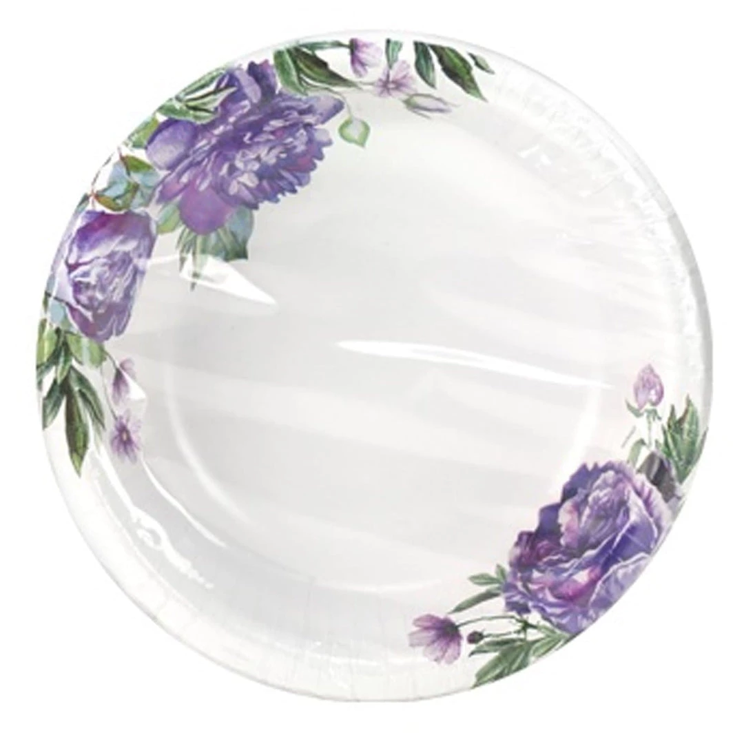 Peony Designed 20 oz. Bowls, Color: Purple, Color Family: Purple, Material: Paper, Shape: Round, Capacity: 20 Ounces, Product Size:, 20 Ounces, Attributes: Coated for Hot and Cold.