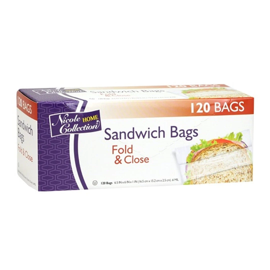 Nicole Home Collection Fold & Close Sandwich Bags, 120 Count. Designed for all occasions, banquets, dinners, parties, upscale catering, and home. Disposable Products.