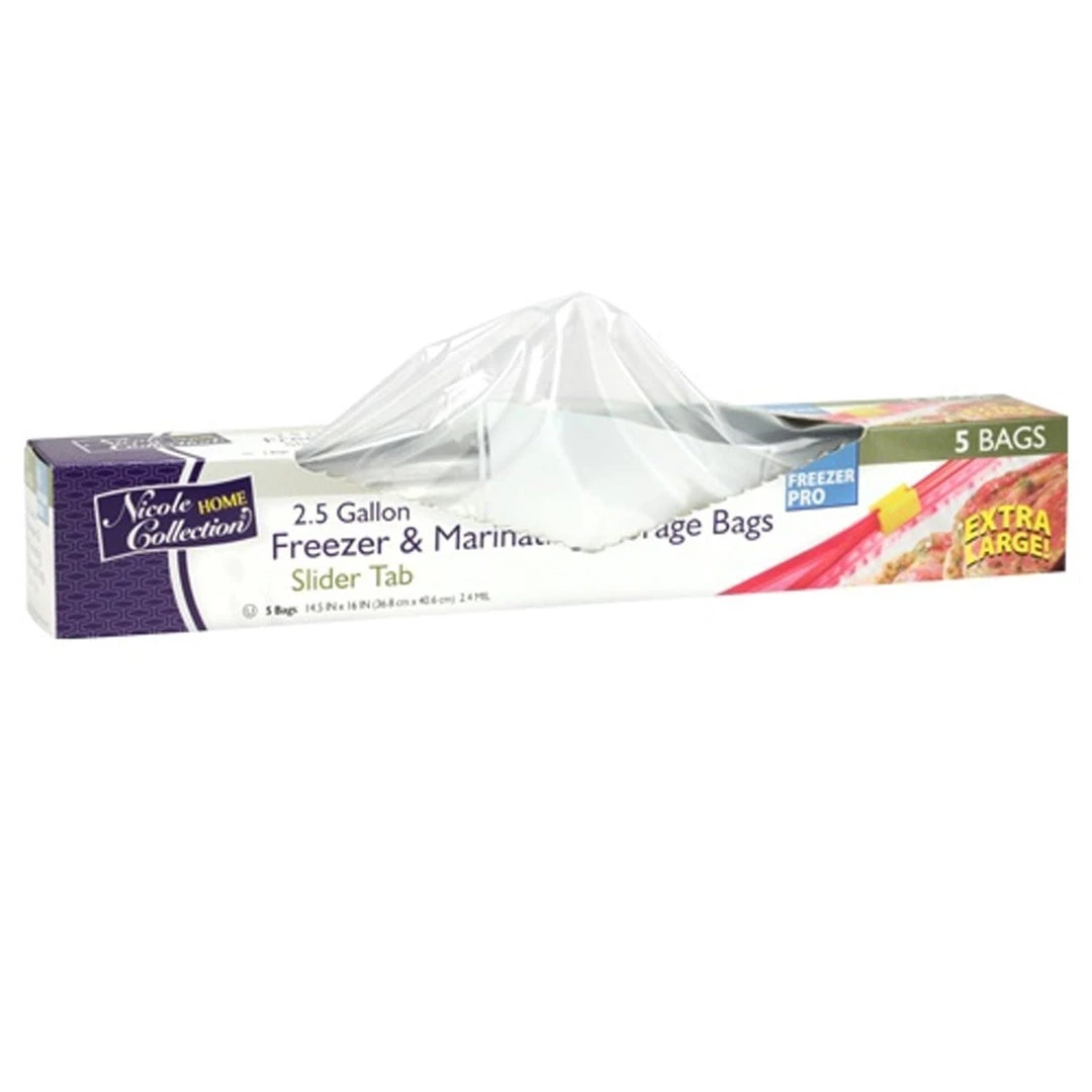 $14.19Nicole Home Collection 2.5 Gallon Freezer/Storage Bags with Slide, 5 Count. Designed for all occasions, banquets, dinners, parties, upscale catering, and home. Disposable Products.