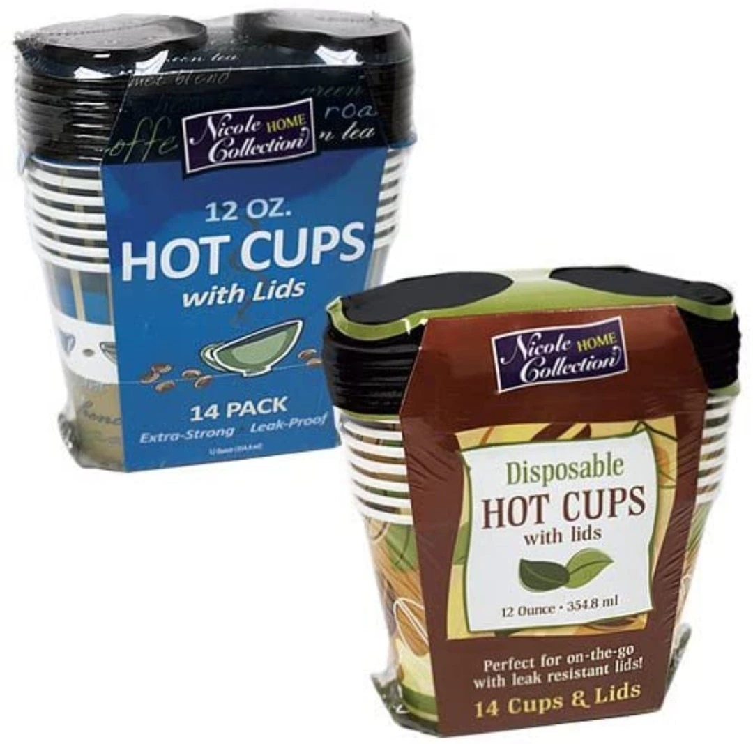 Nicole Home Collection 12oz Hot/Cold Cup with Lids. Coffee Cup or Coffee Bean Design. You will receive either a Coffee Bean or a Coffee Cup designed paper hot cup. Style chosen randomly. Both patterns look great! Perfect for on the go! This cup comes in 16oz or 12 oz. and you can purchase a pack with or without the plastic lid. Designed for all occasions, banquets, dinners, parties, upscale catering and home. Disposable Products.